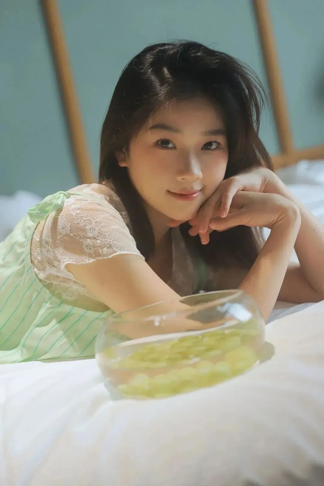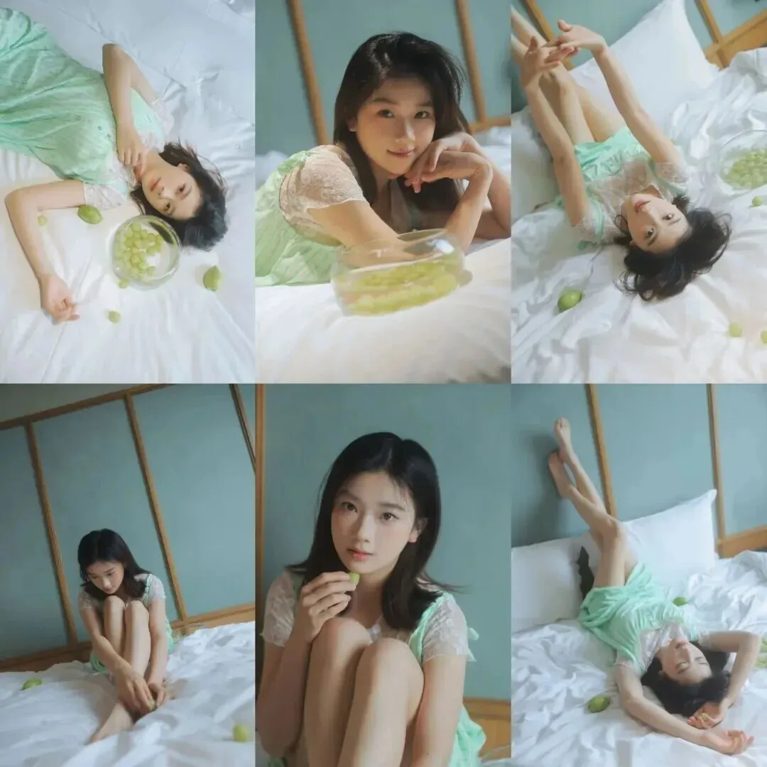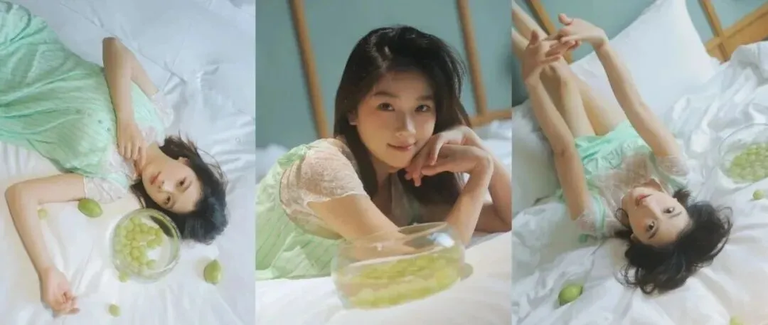 姐妹们,夏天到了,是不是只想待在空调房里不想出门?其实宅家也能拍出超级有氛围感的大片!今天给大家分享一组居家写真教程,不用复杂的布景,一张床,一串葡萄,就能搞定清新又治愈的夏日写真。