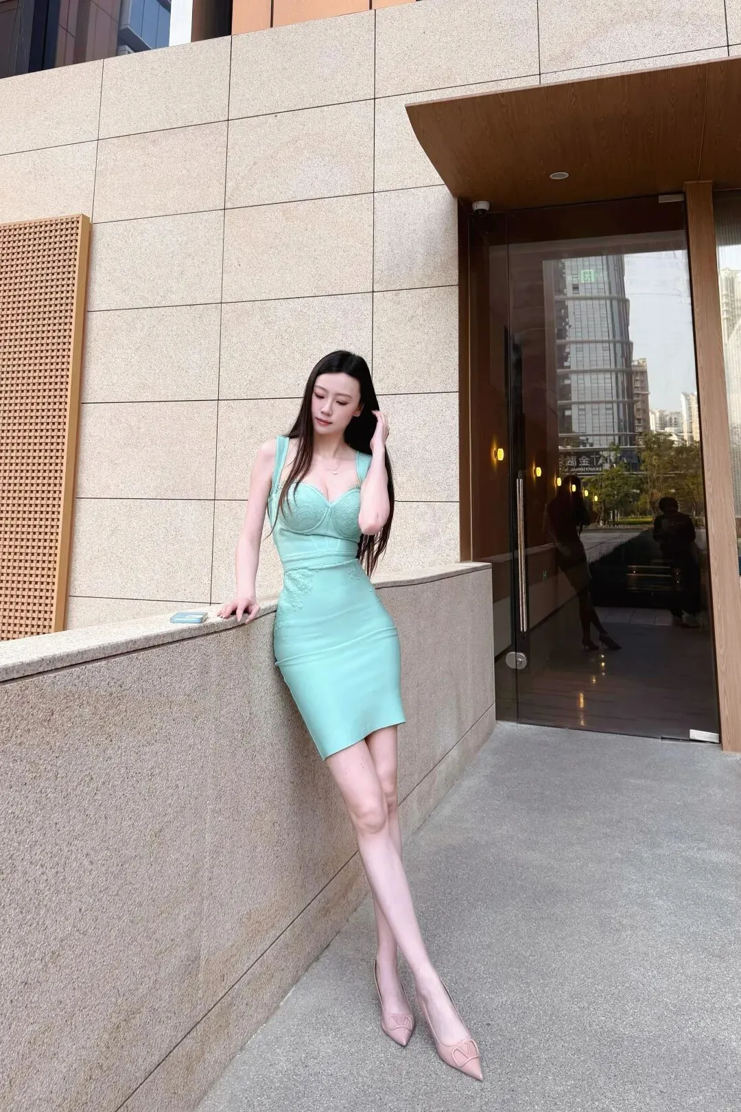 📷薄荷绿的修身裙勾勒出利落线条,蕾丝与缎面交织出柔中带飒的质感。在都市的浅灰与暖棕背景里,一抹清新的绿,就是自带松弛感的轻熟氛围感。