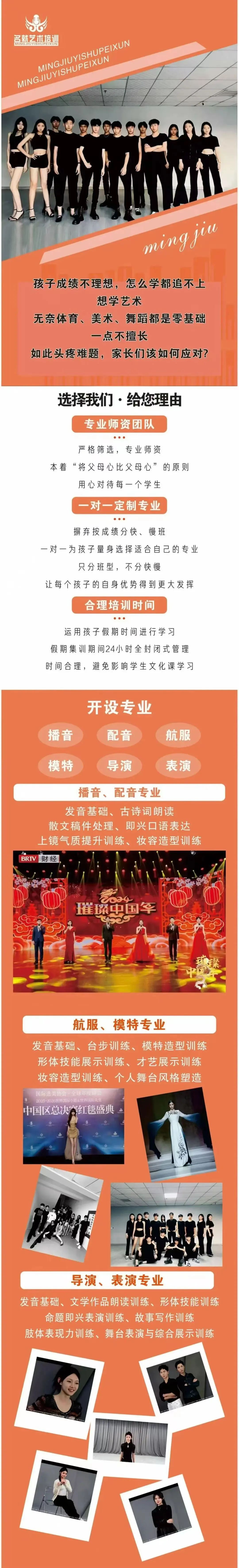 那么此时此刻,高一、高二的你,如果不想青春留下遗憾;如果你热爱艺术、心怀舞台与远方;又或者我文化课暂时不够理想,却依然想冲刺更好的大学。不妨来了解艺考,走进名就艺术培训,让专业为你铺路,让热爱成就未来。