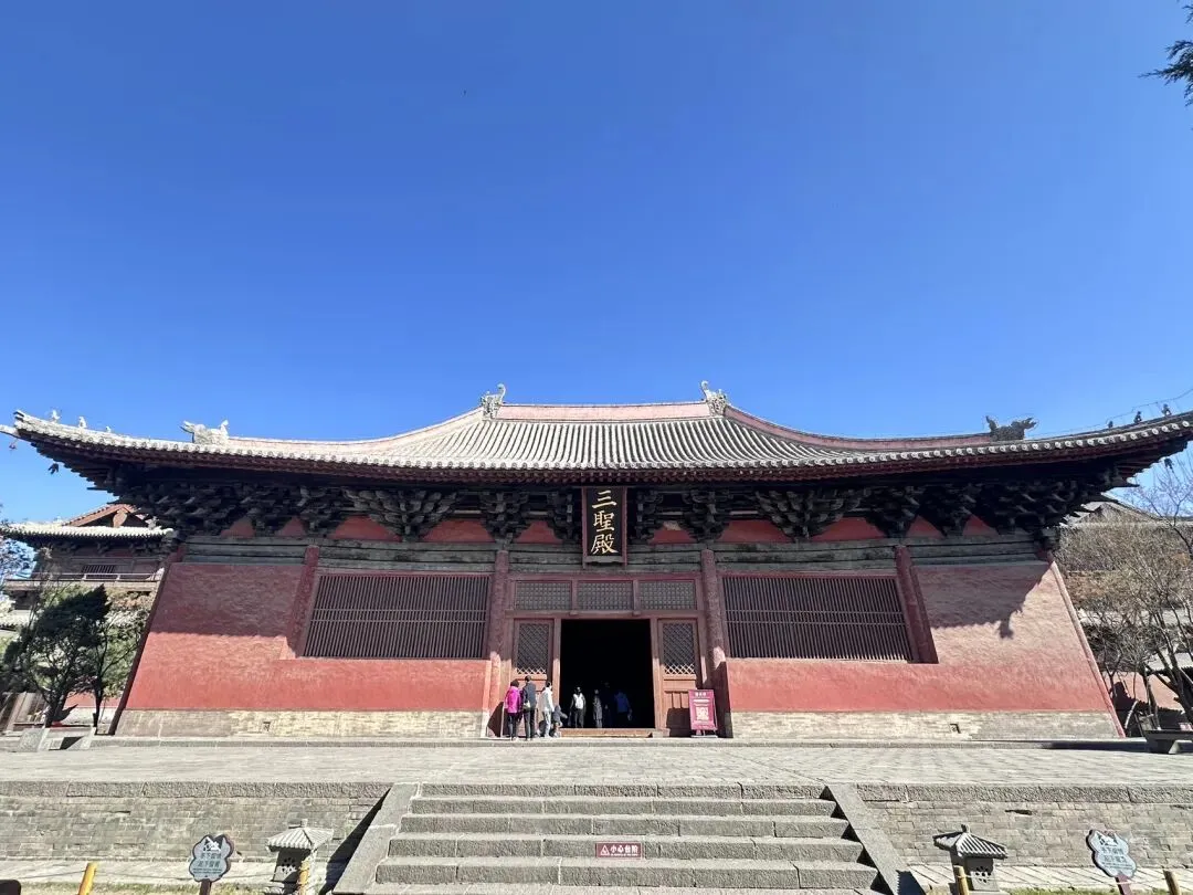 梁思成曾惊叹其珍贵,单檐庑殿顶的厚重、减柱法的精巧、恢宏的殿宇尺度,处处彰显着辽金建筑“雄浑中见精巧”的独特风骨,是千年古刹的活标本。