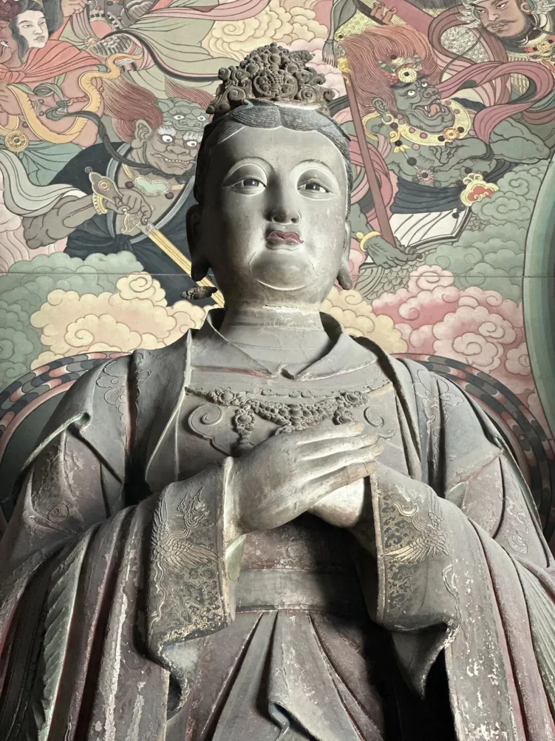 而殿内另一尊鬼子母,更以另一种力量直击人心。她面容庄重,嘴角含着一抹永恒的微笑,满是母性的温柔与包容。在我心里,她才更配得上“东方的蒙娜丽莎”这一称谓☺️。