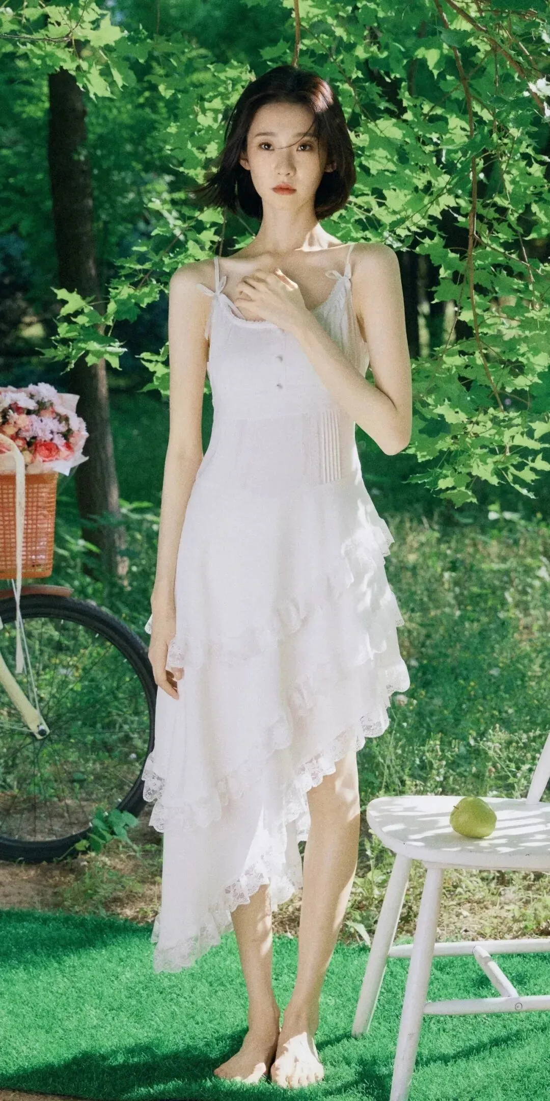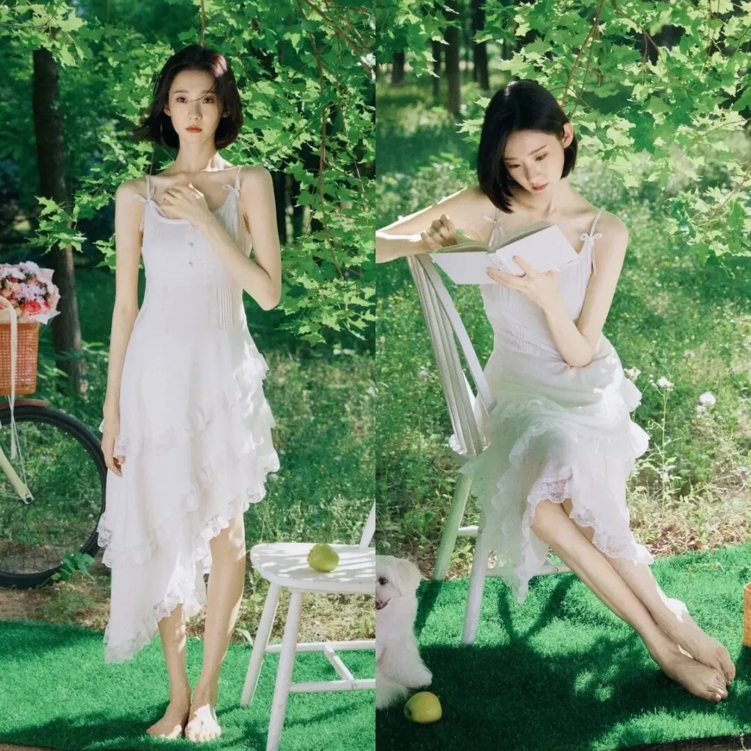 张艺凡|写真精选,春夏少女穿搭——吊带白裙大长腿,身材管理真好