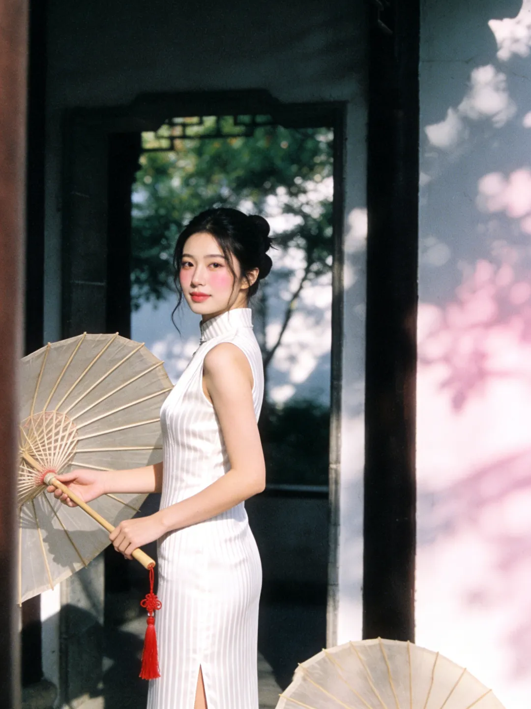 在中式庭院的斑驳光影里,一袭素色旗袍,一把油纸伞,将东方女子的温婉雅致娓娓道来。
