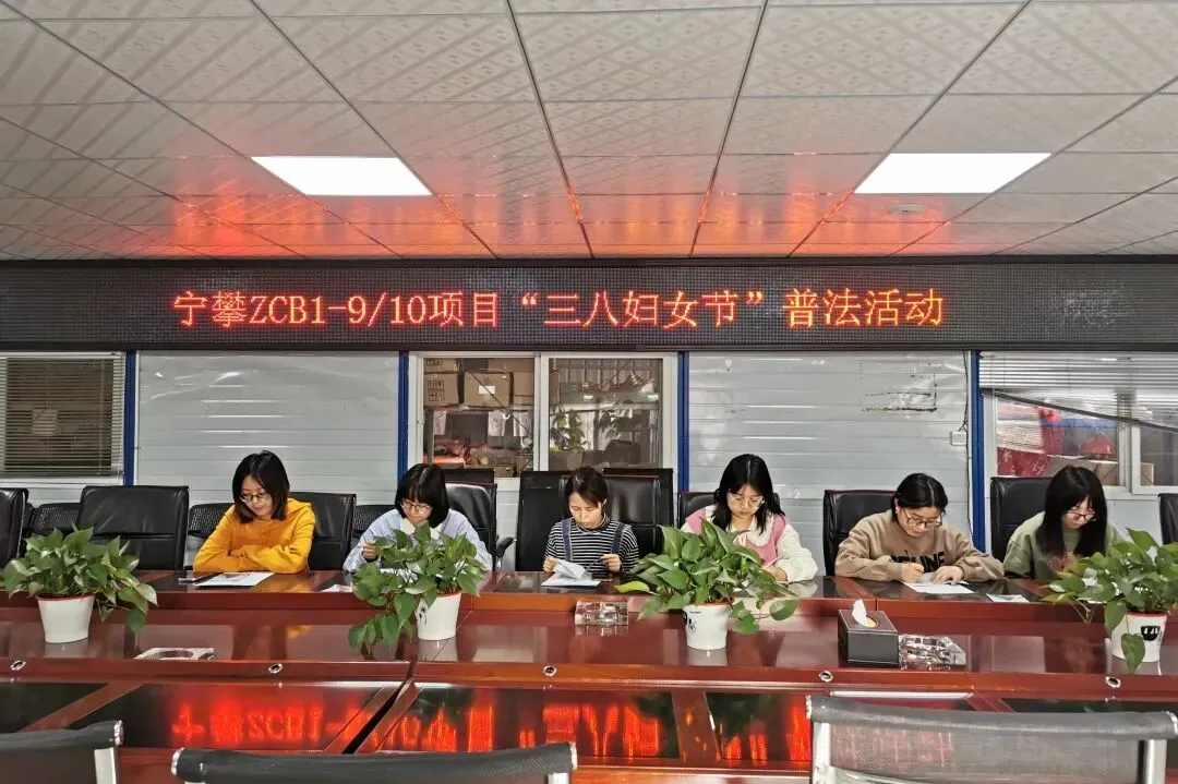 资铜TJ4、宁攀9/10标、宁攀17/18标等项目组织女职工开展了“巾帼绽芳华 建功新时代”的普法宣传活动,确保女职工知法、懂法、用法,维护自身合法权益。