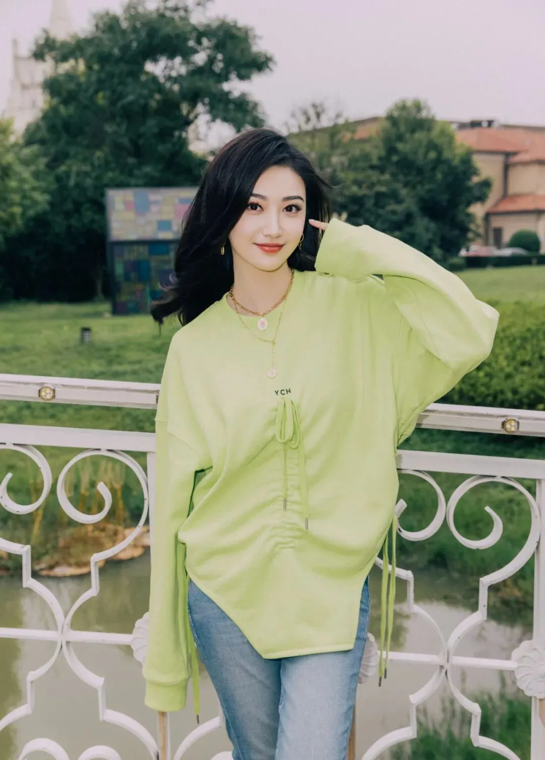 遇到桥边,围栏这种地方,不知道手往哪放时,就让一只手轻轻搭着栏杆,另一只手自然垂下或者放在腿侧,双腿不用并得太紧,微微前后错开一点,更容易拍出好看的腿部线条,这样站会让人看起来更高挑,身材比例也会更顺,照片的感觉很轻松,不费力就能拍出大方又耐看的效果,