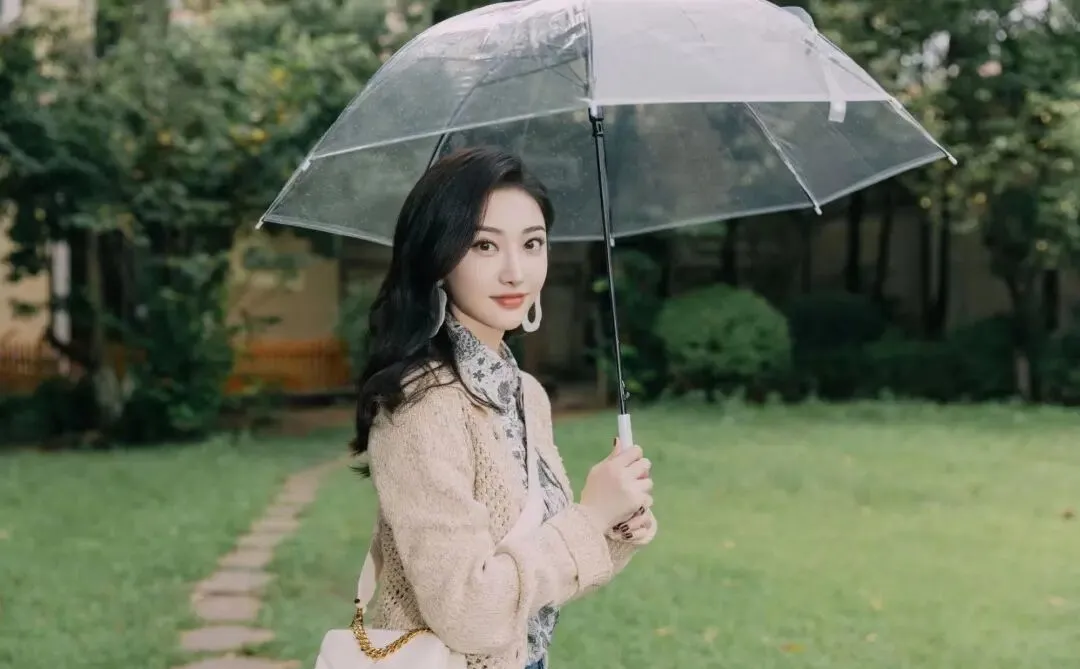 下雨天或者花园草地这种场景,透明伞真的是很好用的小道具,拍的时候身体先侧过去,双手轻轻握住伞柄,再把脸回过来看镜头,嘴角带一点点笑意就很好,这个姿势能把侧身线条拉出来,让肩背看着更薄,整个人也会更挺拔,拍出来会有一种安静温柔的氛围,像随手抓拍到的瞬间,特别有生活感,