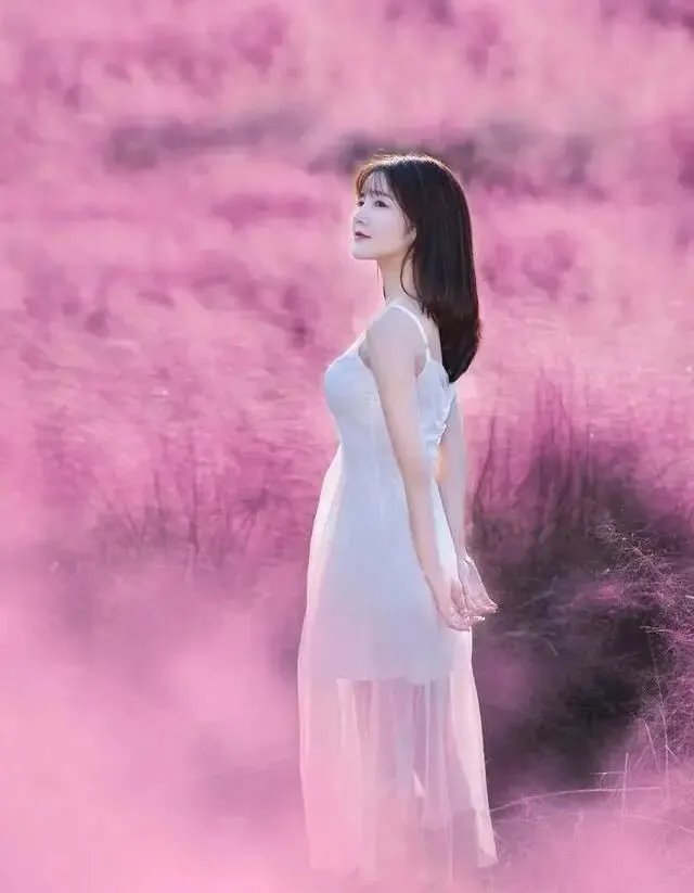 站在粉黛草中间时,身体不要正对镜头,稍微侧过去一点会更好看,肩膀自然打开,下巴轻轻抬起,眼神看向远处,不用刻意笑,安静一点就很有感觉,这个动作很能拉出颈部和肩线,整个人会显得更挺拔,裙摆也会更轻盈,拍出来就是那种温柔又安静的气质,特别耐看,