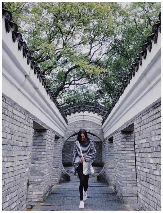 这样做的好处是,人物会一下子被突出出来,视线也更容易集中到主角身上。画面不再只是“一个人站在那”,而是会有前景、中间人物、后方环境的递进感。尤其穿搭比较简洁的时候,这种拍法会让整体更完整,照片也更像有被认真构思过,而不是随手一拍。