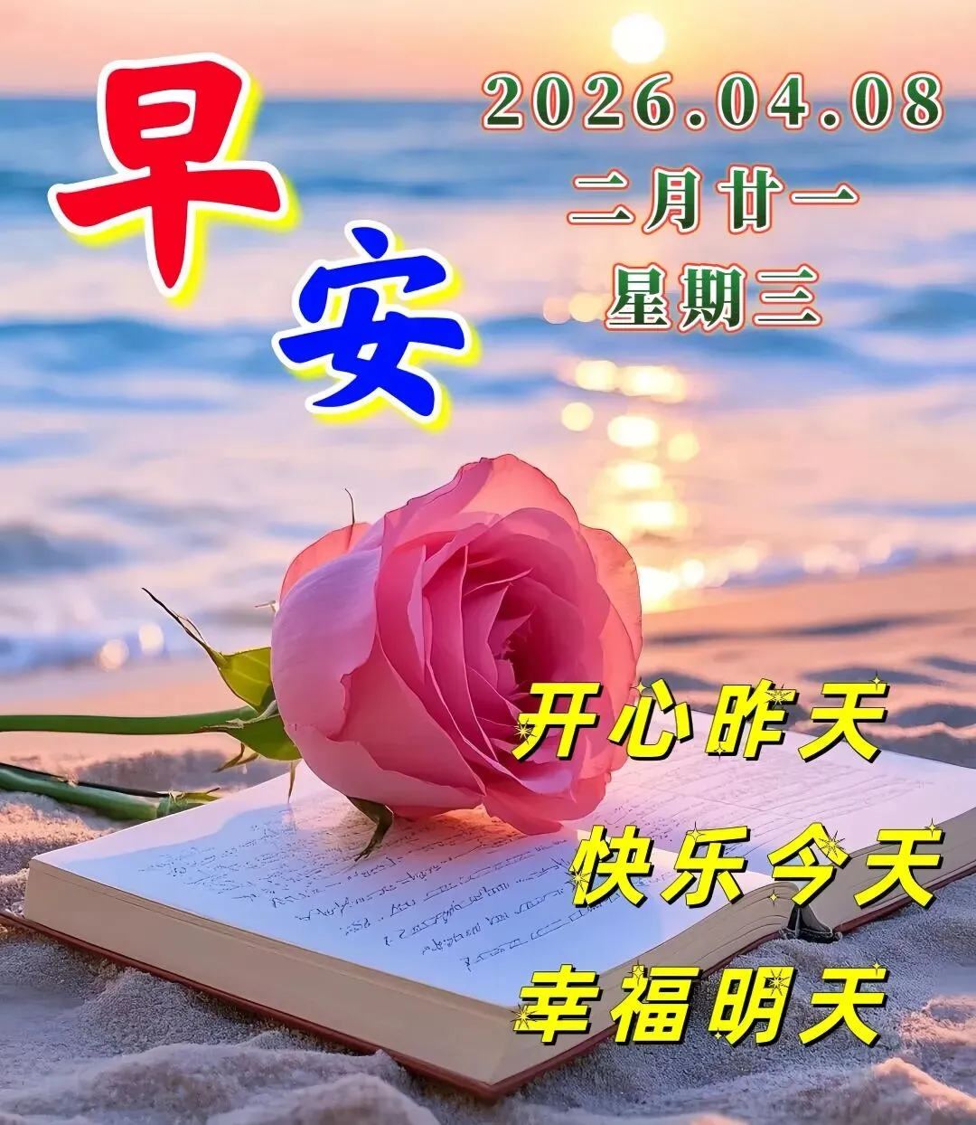 4月8日-漂亮早安图片鲜花带字最美早上好问候语图片带字温馨