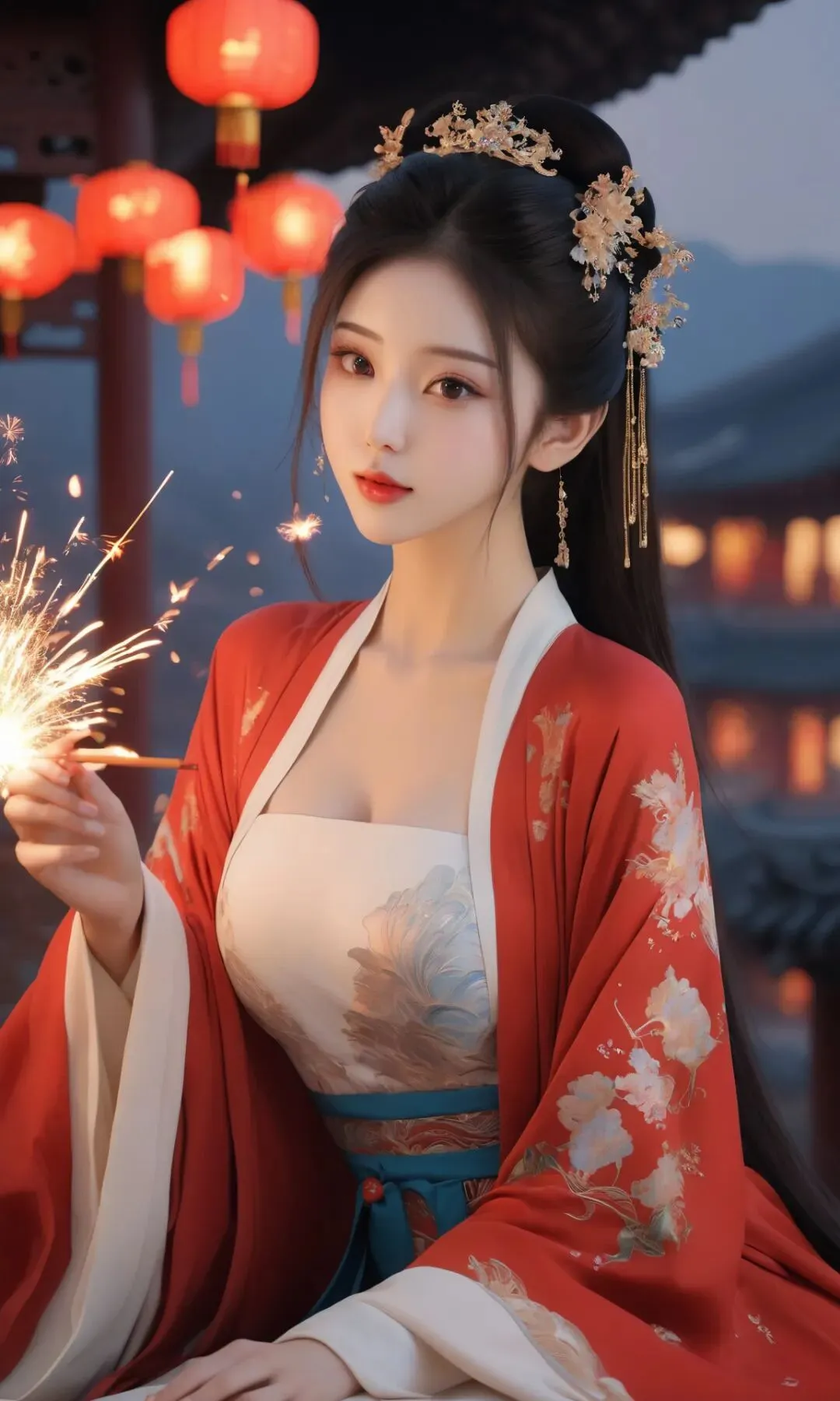 红衣胜火,手握星河。灯笼高挂,烟火璀璨。把这一瞬间的浪漫,定为你的专属壁纸。✨
