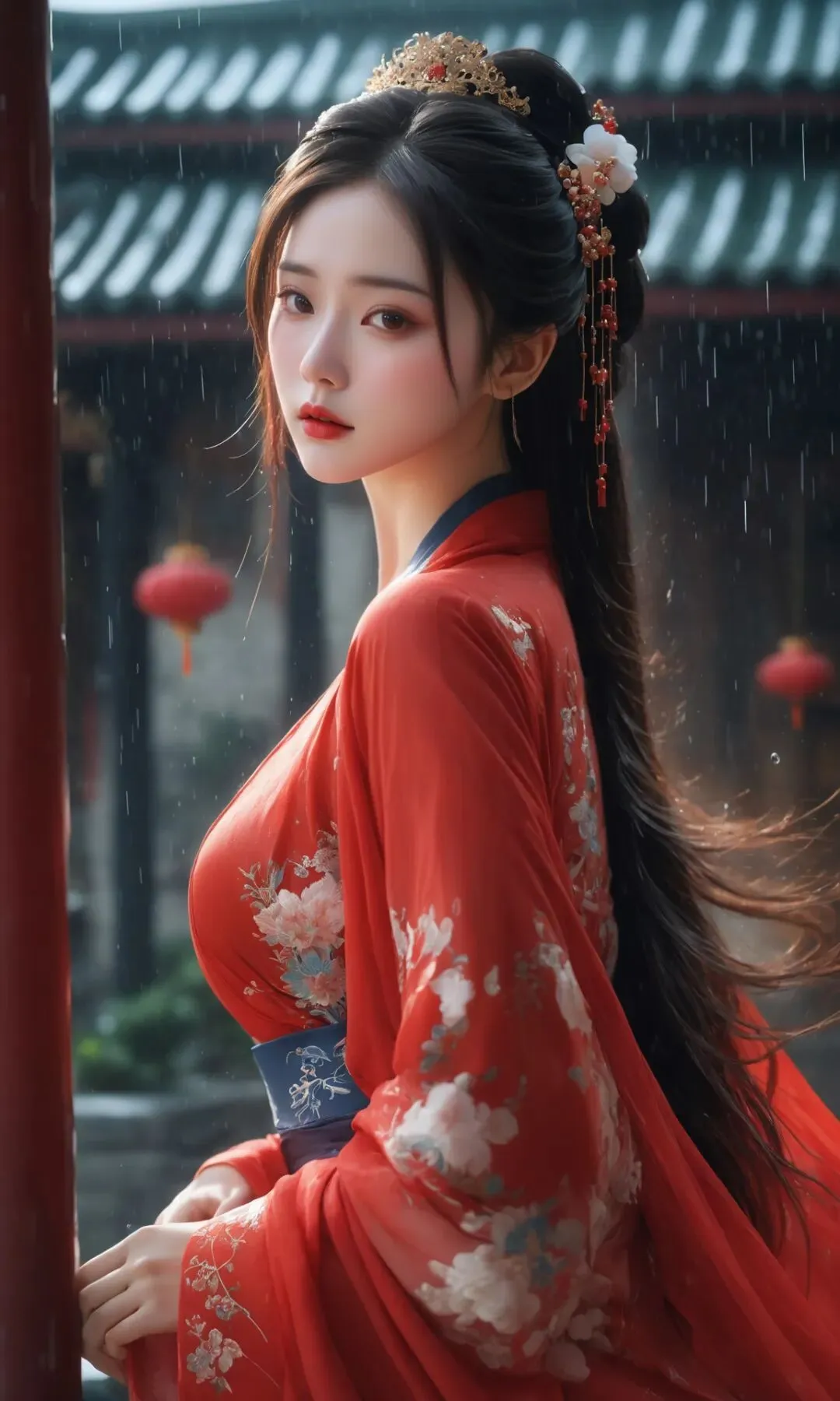 烟雨朦胧,红衣入画。雨丝缱绻,古韵悠长。在这个下雨天,邂逅一位古风佳人。🏮