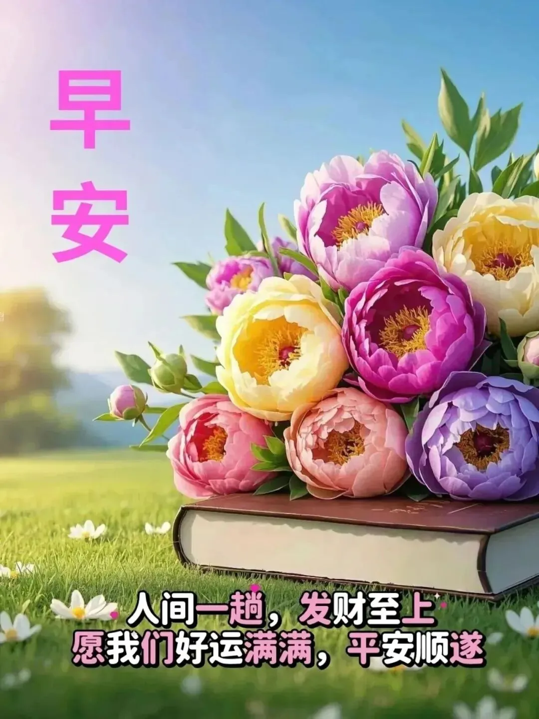 🌞愿美丽陪你步步生辉,🍀愿健康陪你身体倍健,🌷愿幸福陪你心花怒放,💝愿快乐陪你笑容满面,🎉愿平安陪你迎接挑战,🎈愿开心陪你每时每刻。🌹祝你早安!早安!🌾