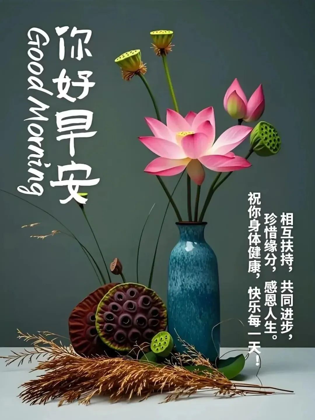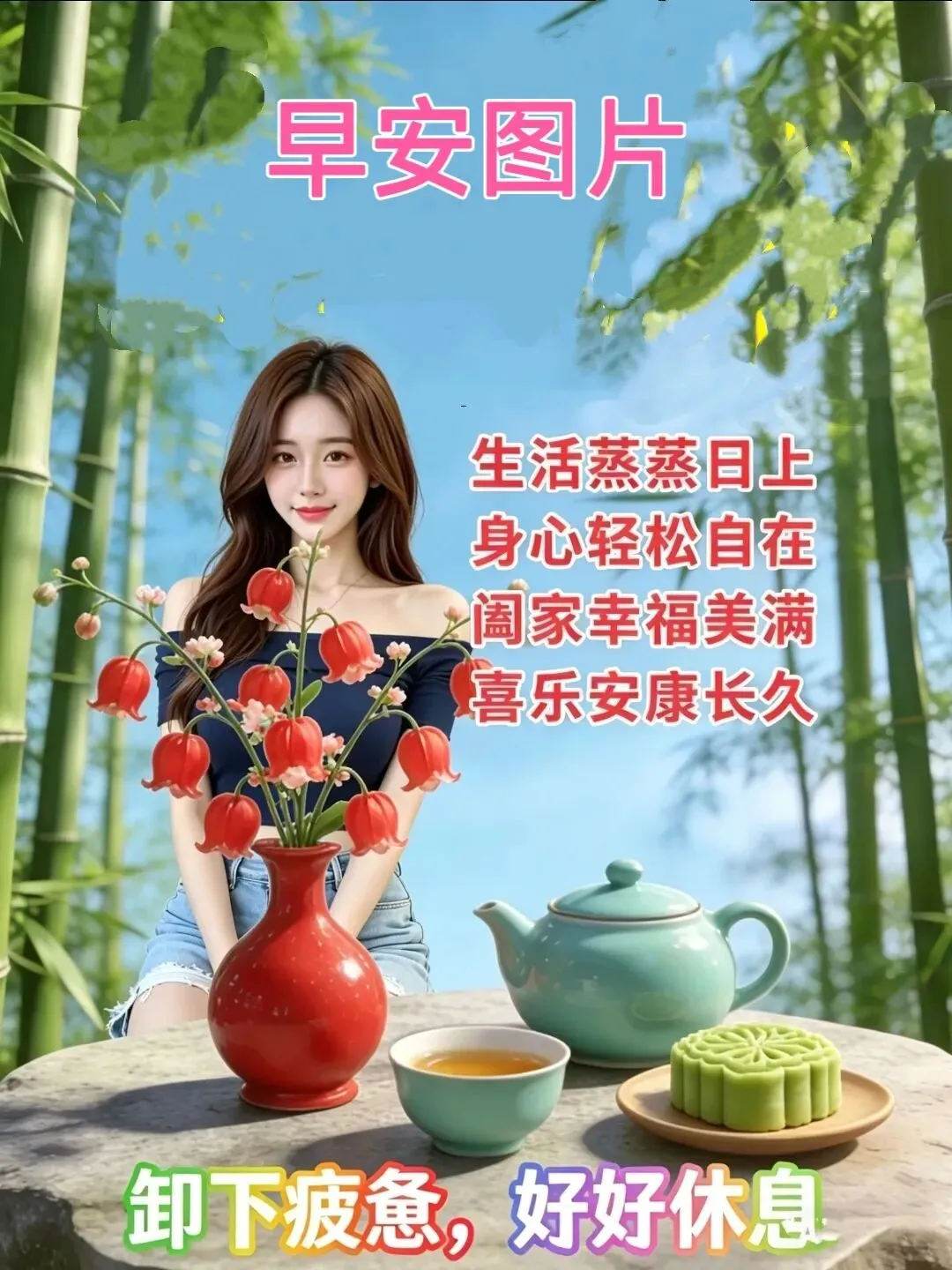 静心思良友,问候在清晨☀️。日子糊涂过,世界天天新✨。万物皆下品,唯有健康真💪。潇洒度人生,越活越年轻👵。清晨安好,吉祥如意!