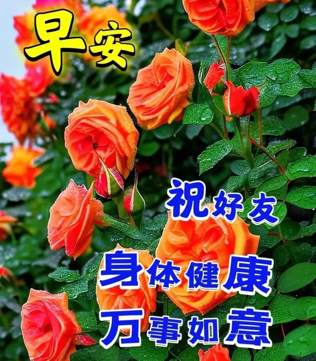 🌹早上好!🍃美好的一天,从清晨开始!💥送你一份问候,让你欢笑;🍄送你一句祝福,愿你心情愉快!🎉平安顺心,快乐如意!🌸祝大家新的一天,一切都美好!🍒