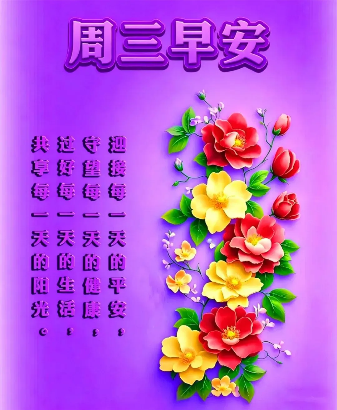 每日清晨,问候穿梭。捎去吉祥,驱散烦恼,接住祝福,沐满阳光。愿我们健康喜乐,童心永驻,一路欢歌!周三早上好!