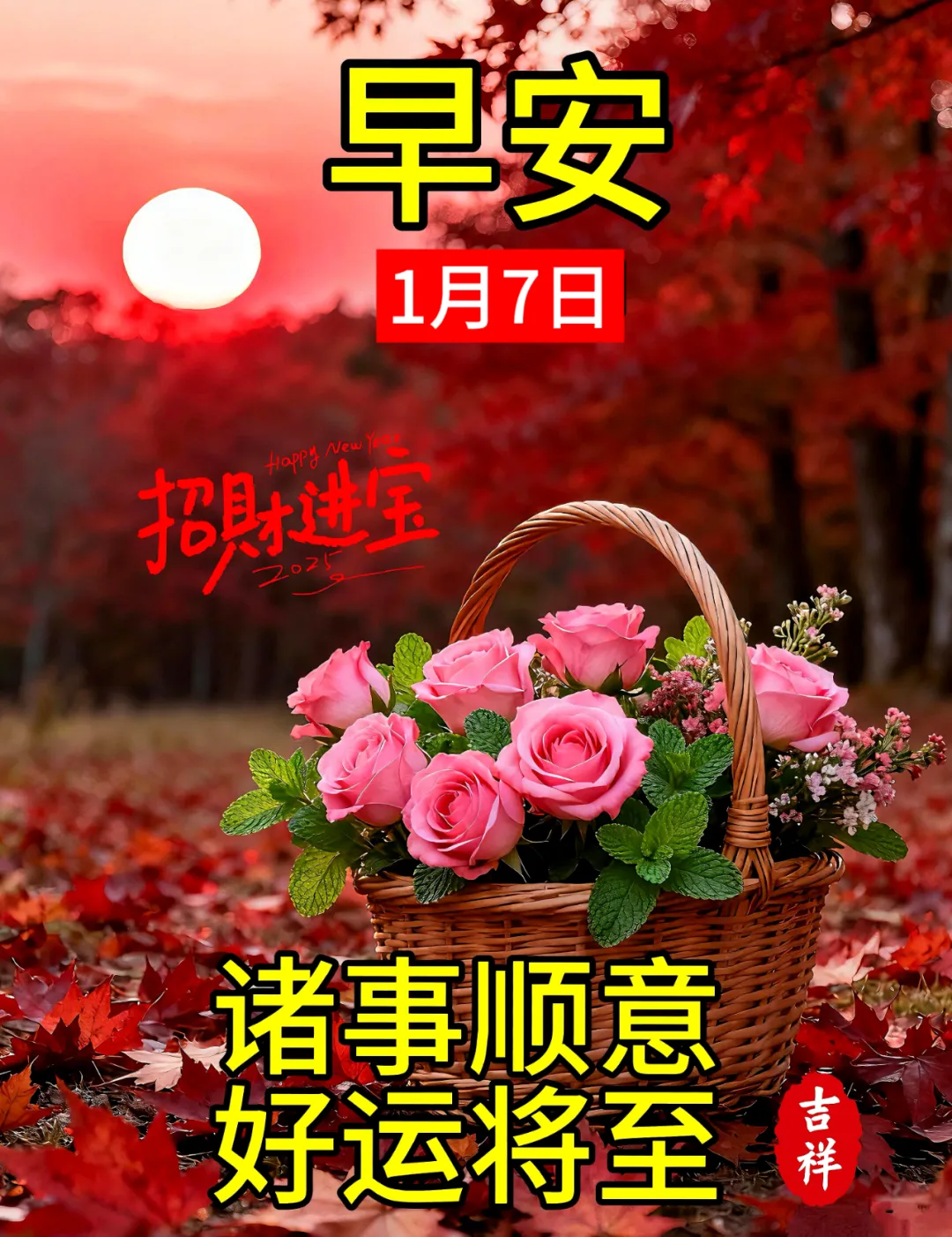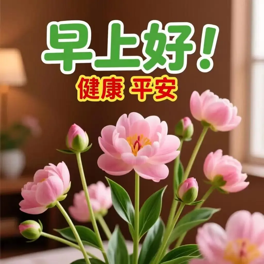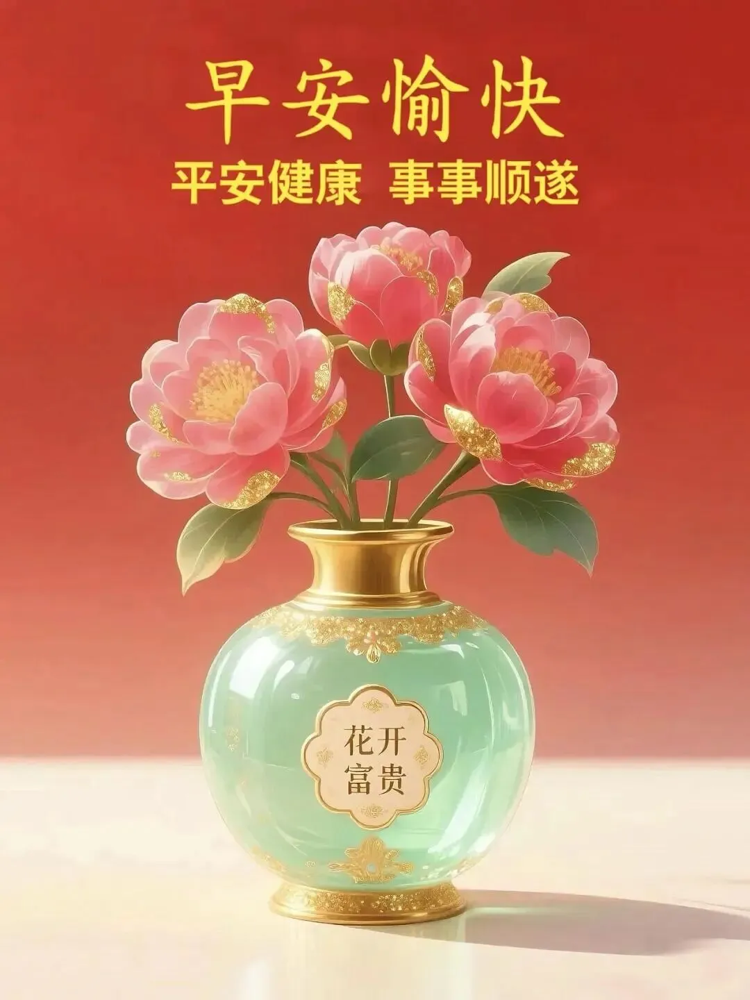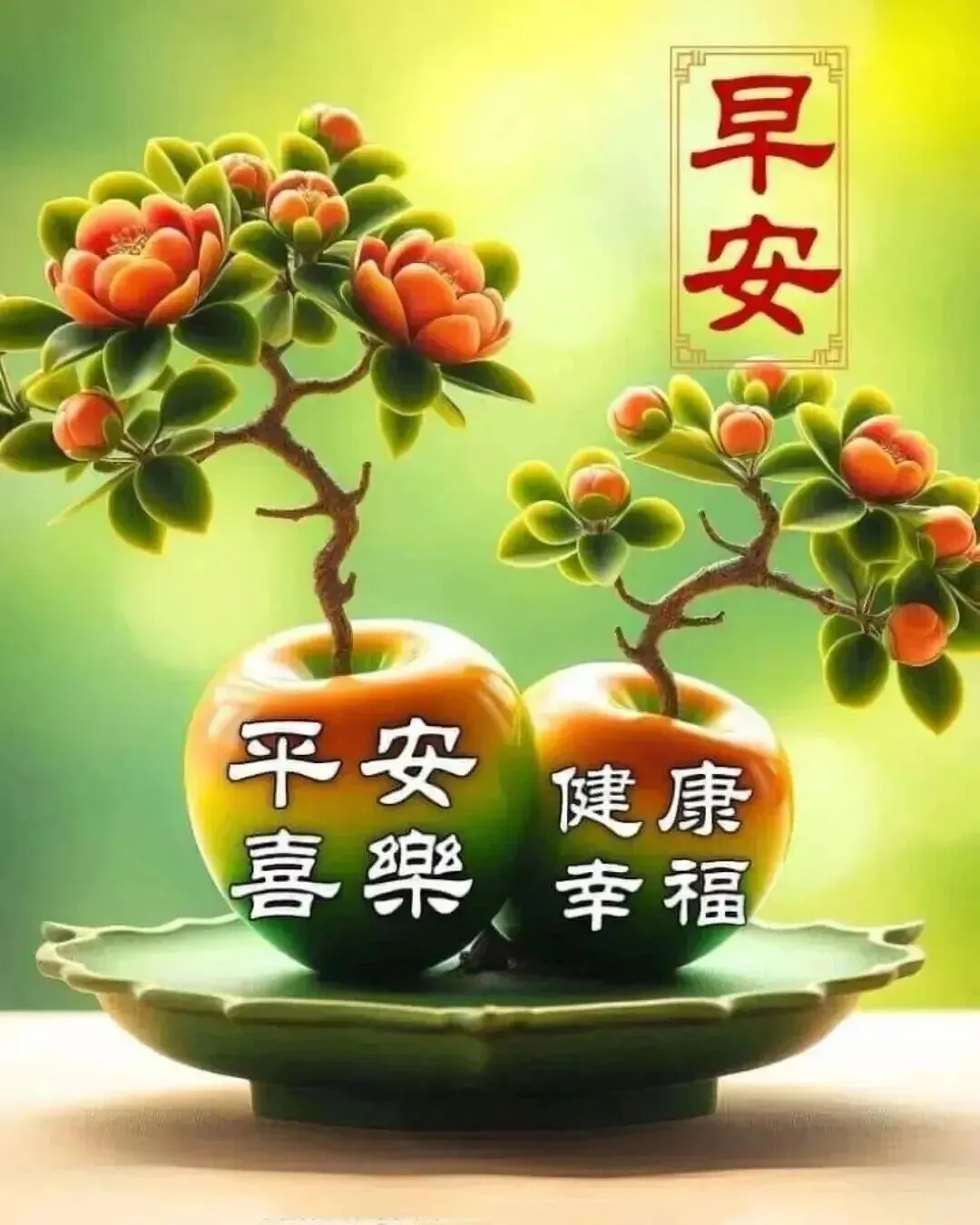 早晨的第一声问候,带来健康、好运和财气;清晨的第一个祝福,愿你开心、幸福和平安。早安!🌹🍎😊🍅🙏🎉