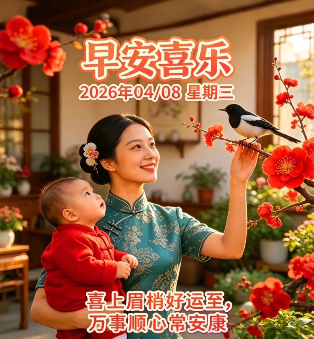 4月8日最漂亮祝福图片大全,一生平安,心里甜.相互牵挂皆为缘,早安!