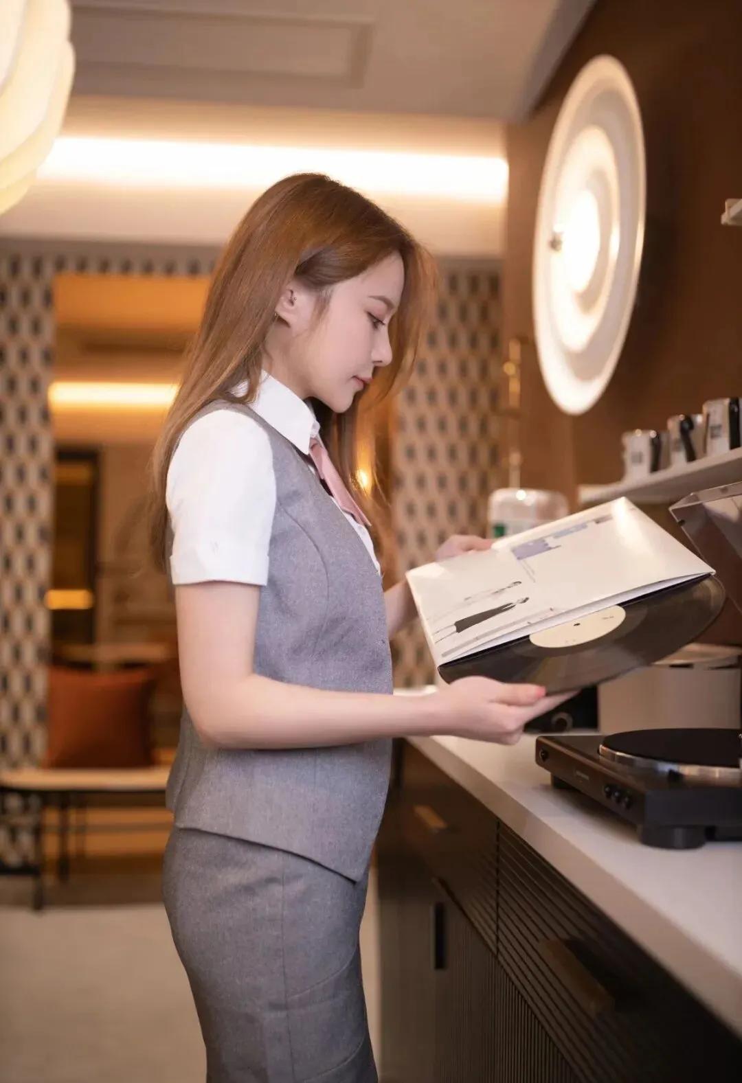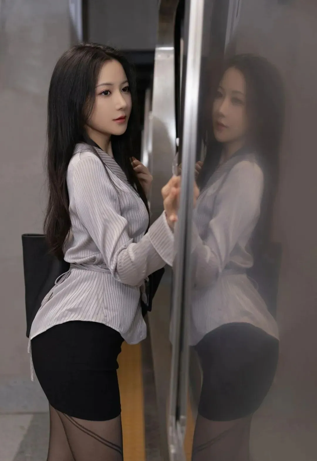 黑色轻透长裙,搭配黑色内衣,以及魅惑的黑丝和高跟鞋,婀娜多姿,极致性感。