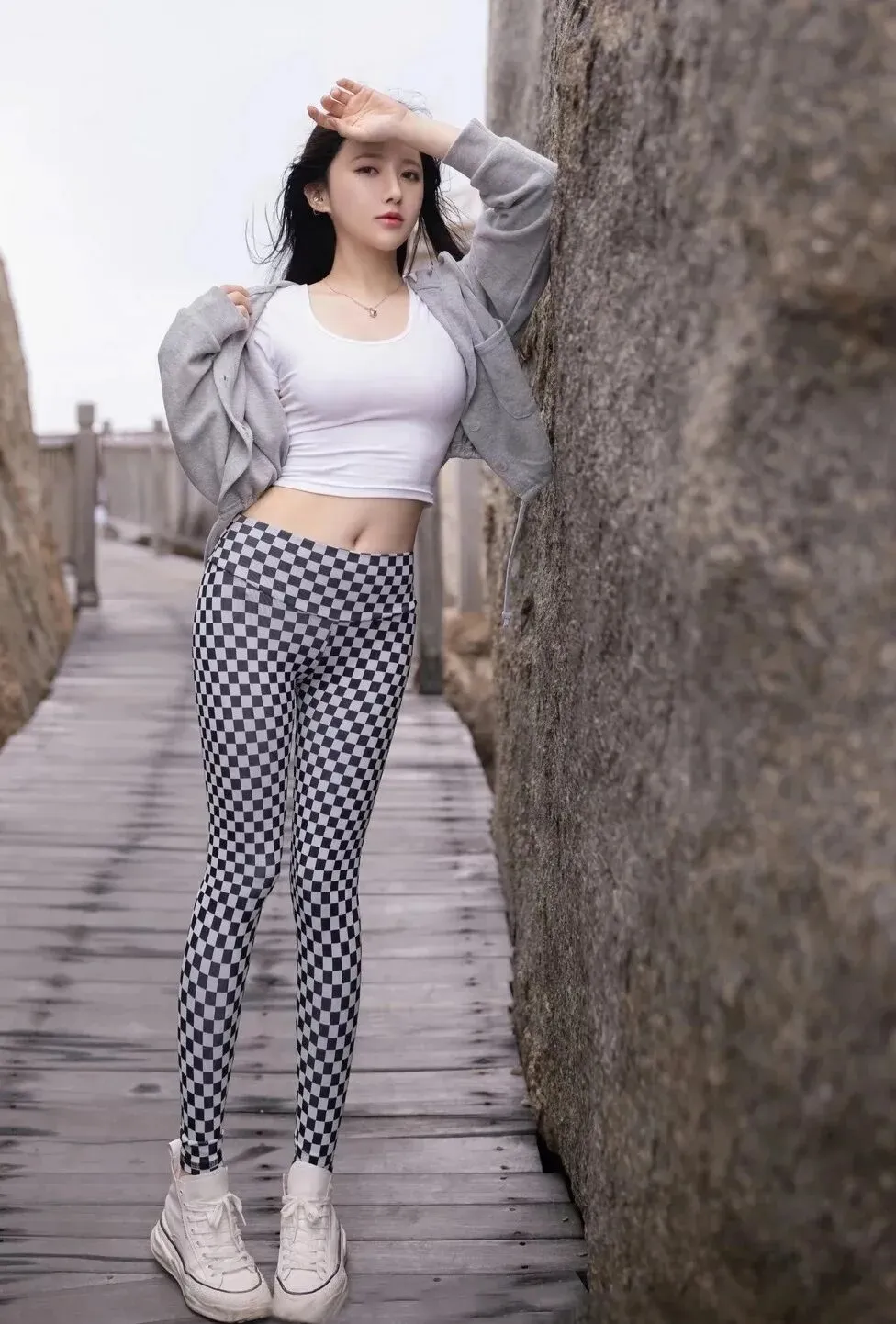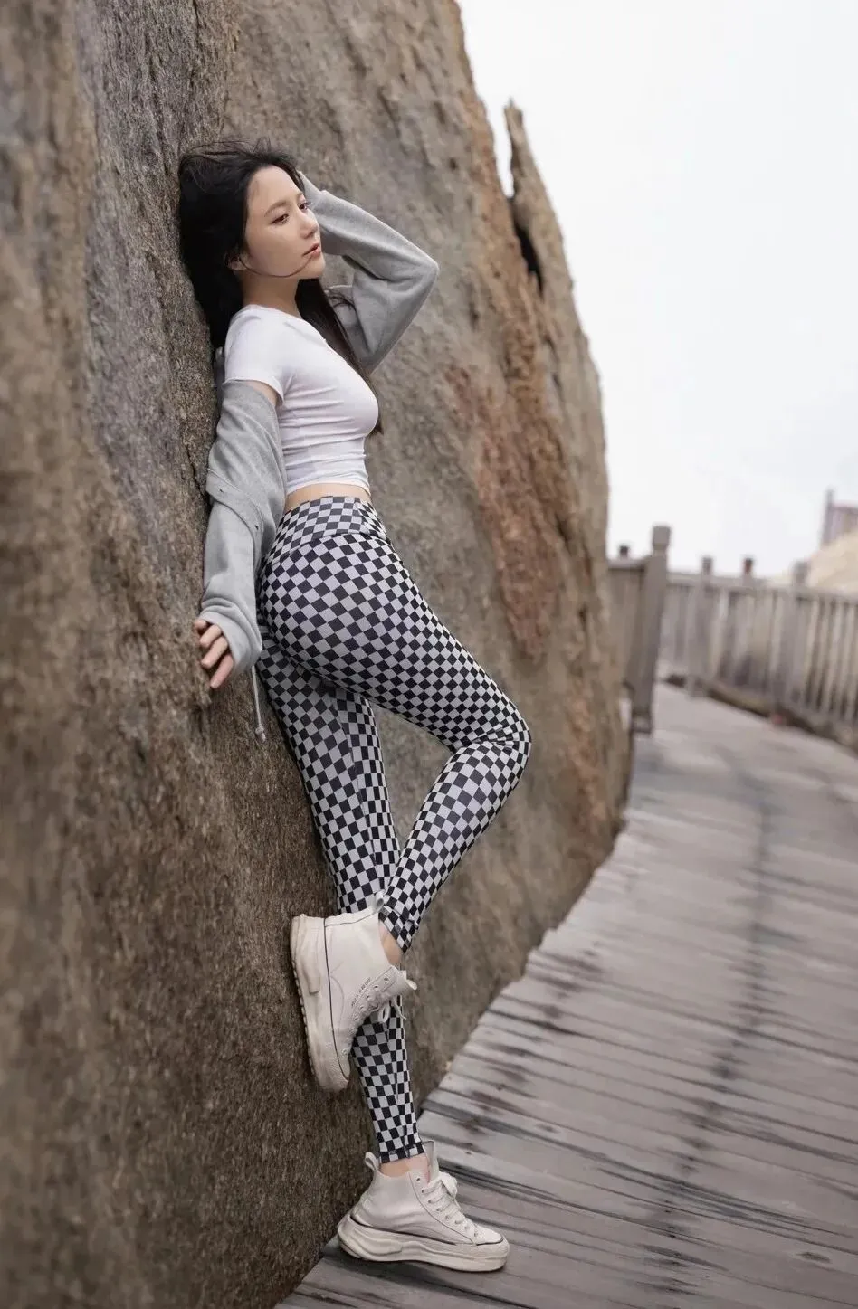 这条棋盘格瑜伽裤,穿在鱼子酱身上,格外的性感。▼