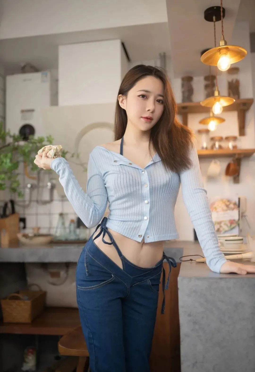 这条牛仔裤的腰部设计实在是太经典了,给人一种内裤外穿的错觉,其实和牛仔裤是一体的,还记得古力娜扎的内裤牛仔裤造型吗?