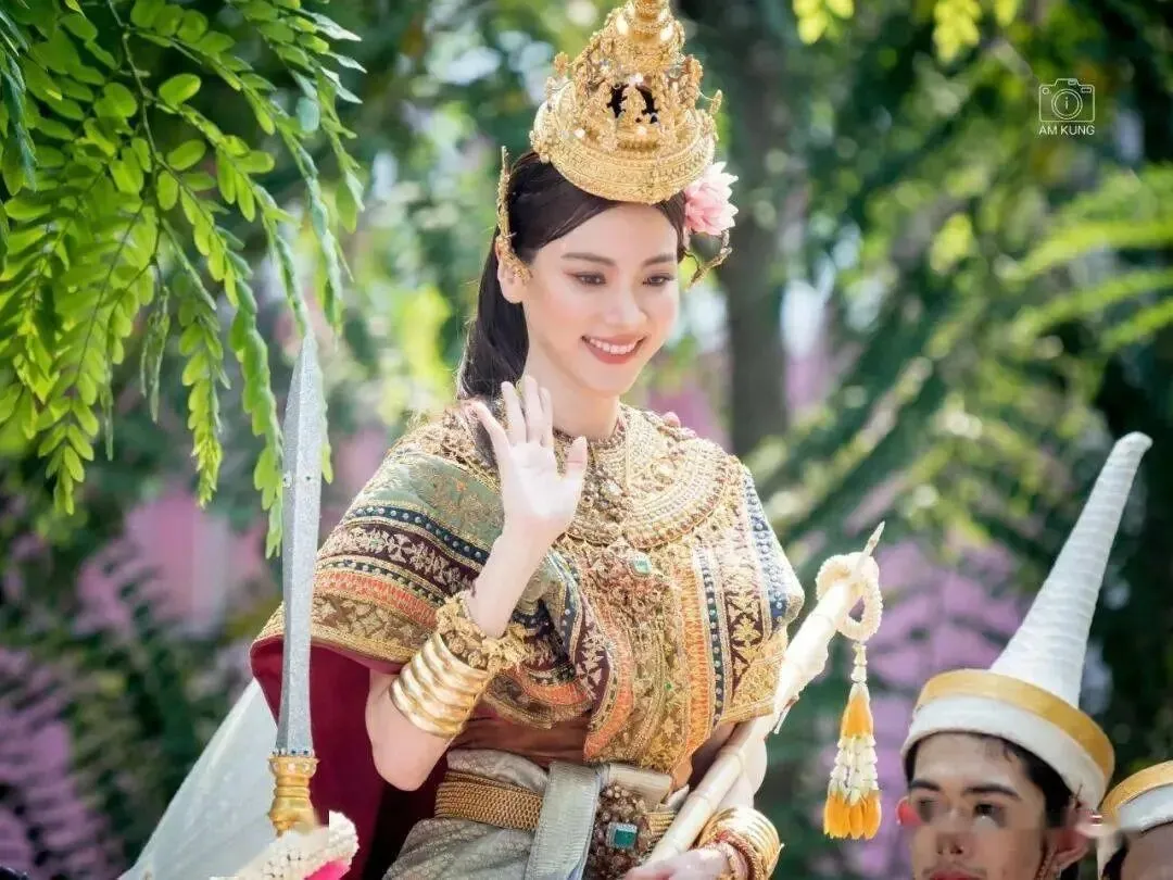 Baifern(小水)凭借《初恋这件小事》被观众熟知,灵动的大眼睛和甜美的笑容,让人印象深刻。2023 年,她身着蓝绿色传统泰装,头饰荷花,清新又贵气,右手持双刃短剑、左手持泰国东北传统乐器,明艳大气的模样美到了众多网友的心坎上。