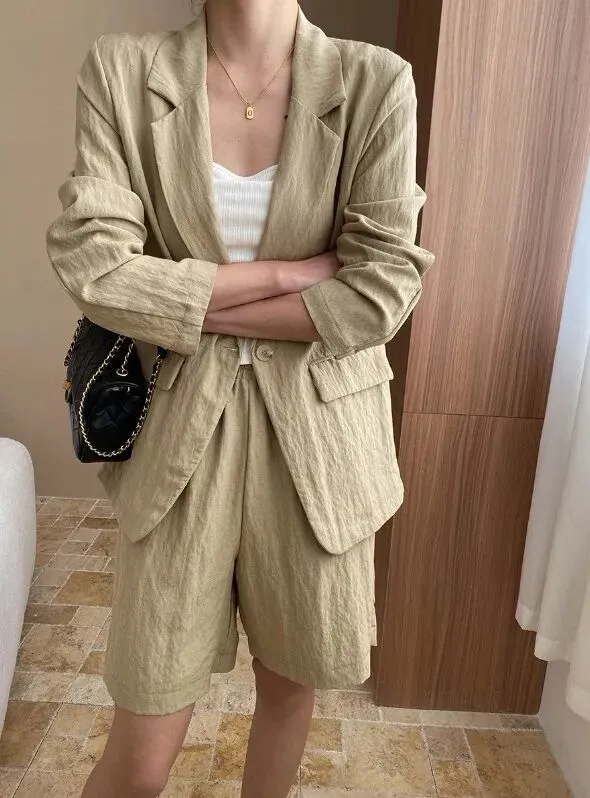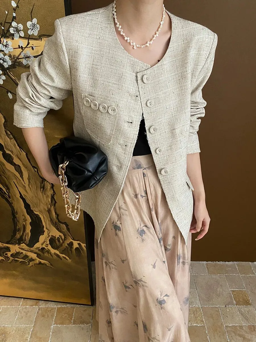 职场女生想要清爽又得体,亚麻西装绝对是首选。放弃厚重的正装面料,一件浅灰色亚麻薄西装,透气不闷汗,干练中带着温柔,通勤穿气场拉满又不会显得刻板。