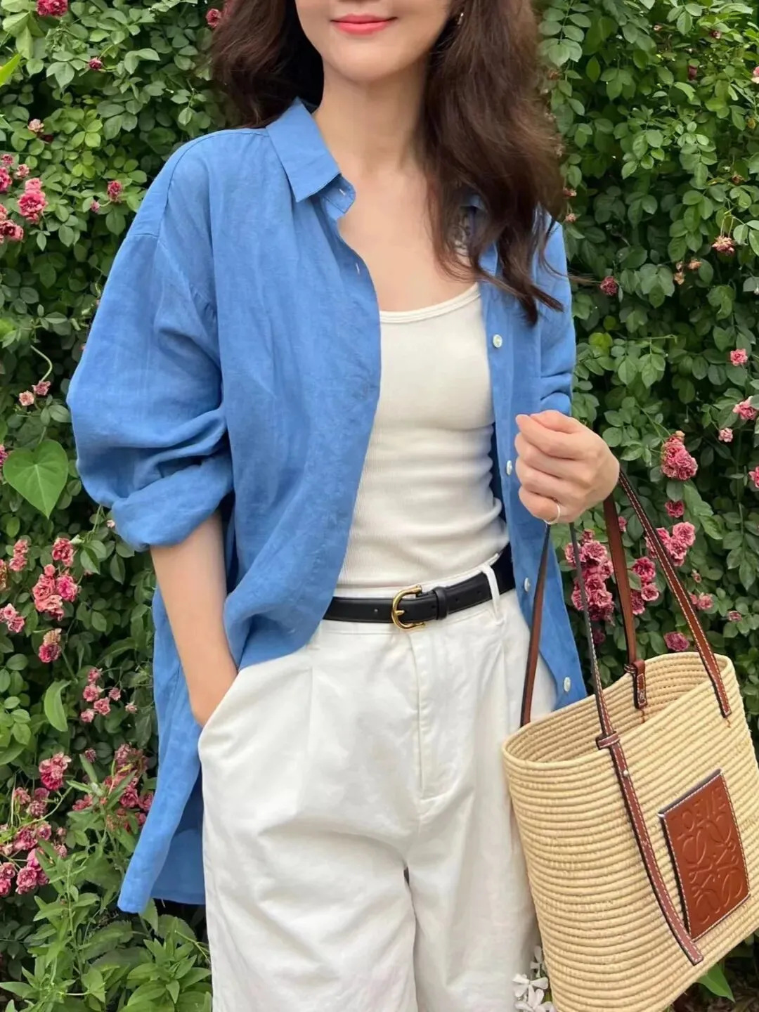 周末出游、逛街遛弯,休闲风亚麻穿搭再合适不过。一件白色亚麻衬衫,永远是衣橱里的百搭王者,单穿时解开两颗纽扣,随性又慵懒,当作薄外套搭配吊带裙、吊带背心,层次感瞬间拉满。