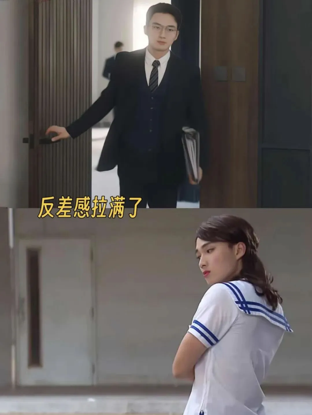 网友说,一边怀念金城安的可爱,一边被郑邵文的反差戳中。