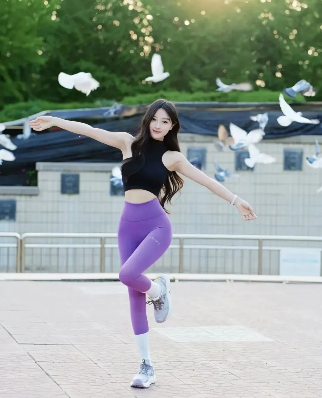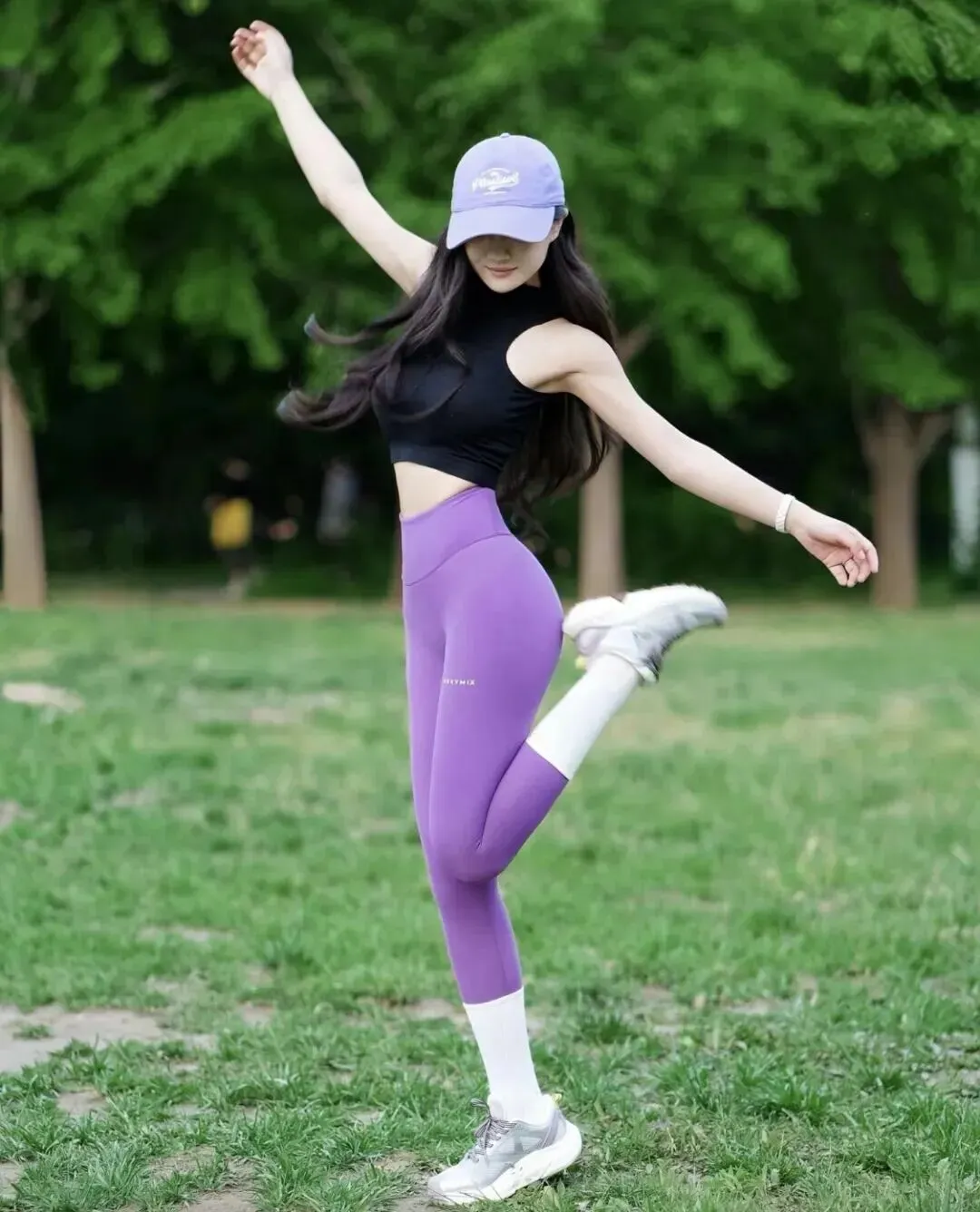 最近好多姐妹私信问,穿瑜伽裤去公园到底怎么拍才不尴尬?其实运动风真的是最容易出片的风格之一,不仅显得活力满满,还能完美勾勒身材线条。很多女生觉得只有穿裙子才好看,其实紧身运动装拍好了,那种健康自信的美才最吸引人,完全不用有身材焦虑。今天就拿这组紫色 leggings 的实拍图给大家拆解一下,如何在户外拍出那种既健康又高级的氛围感,拒绝千篇一律的游客照。
