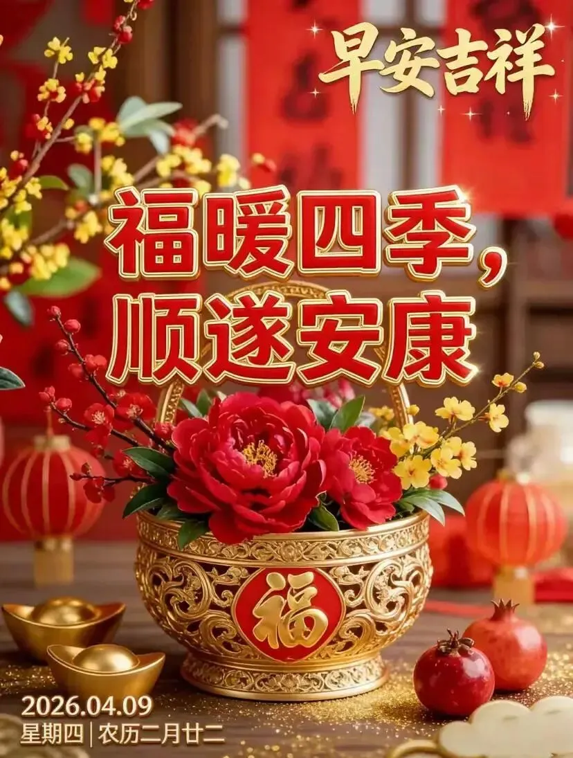 当前位置:首页>美女资讯>2026年04月09日周四早上好问候语图片 温馨淡雅的早安图片 周四愉快