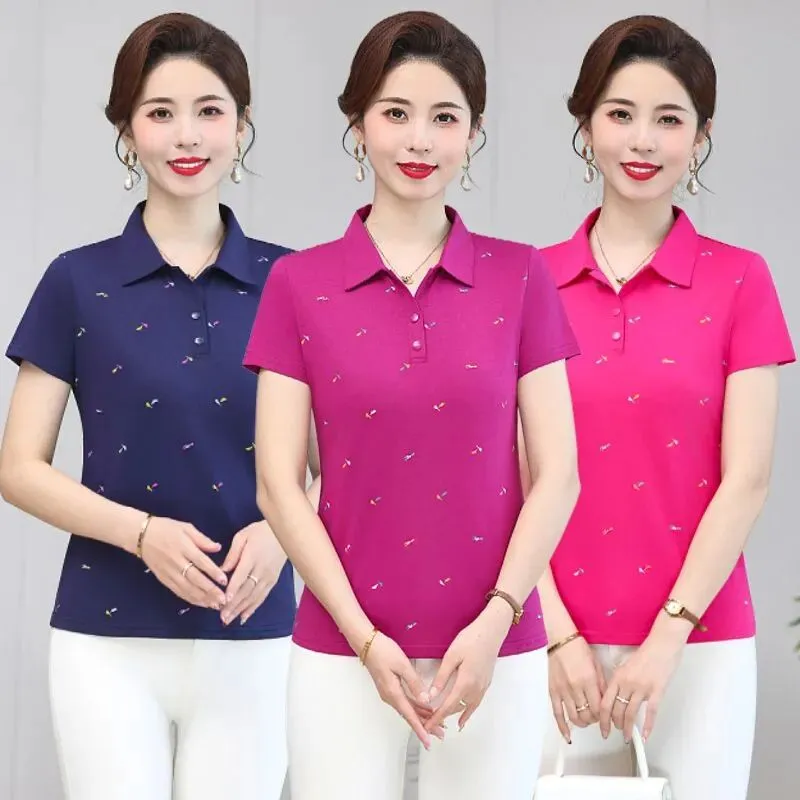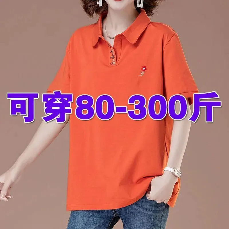 100%品质妈妈翻领女士t恤短袖中老年运动大码上衣夏季新款POLO衫