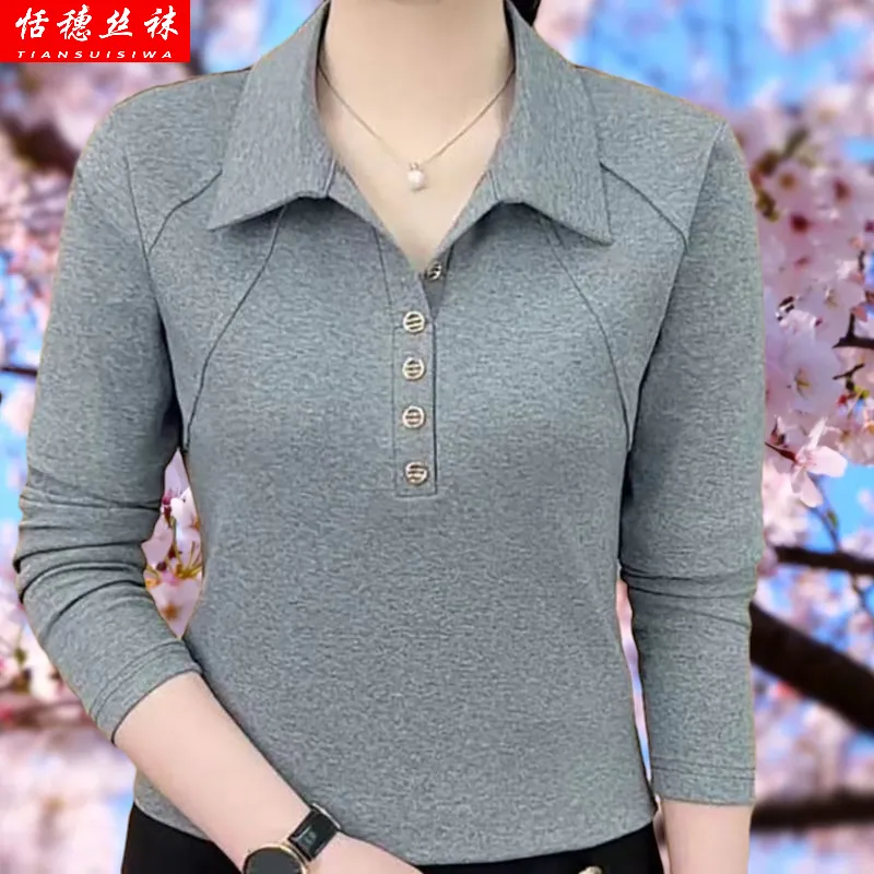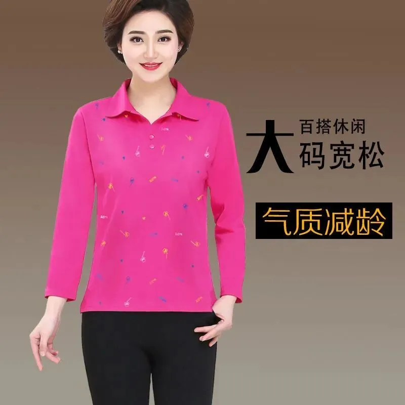 修身翻领长袖春秋季打底衫时尚妈妈显瘦polo衫气质减龄中老年上衣