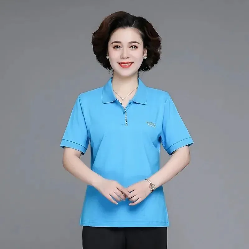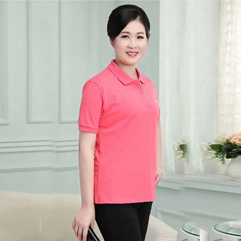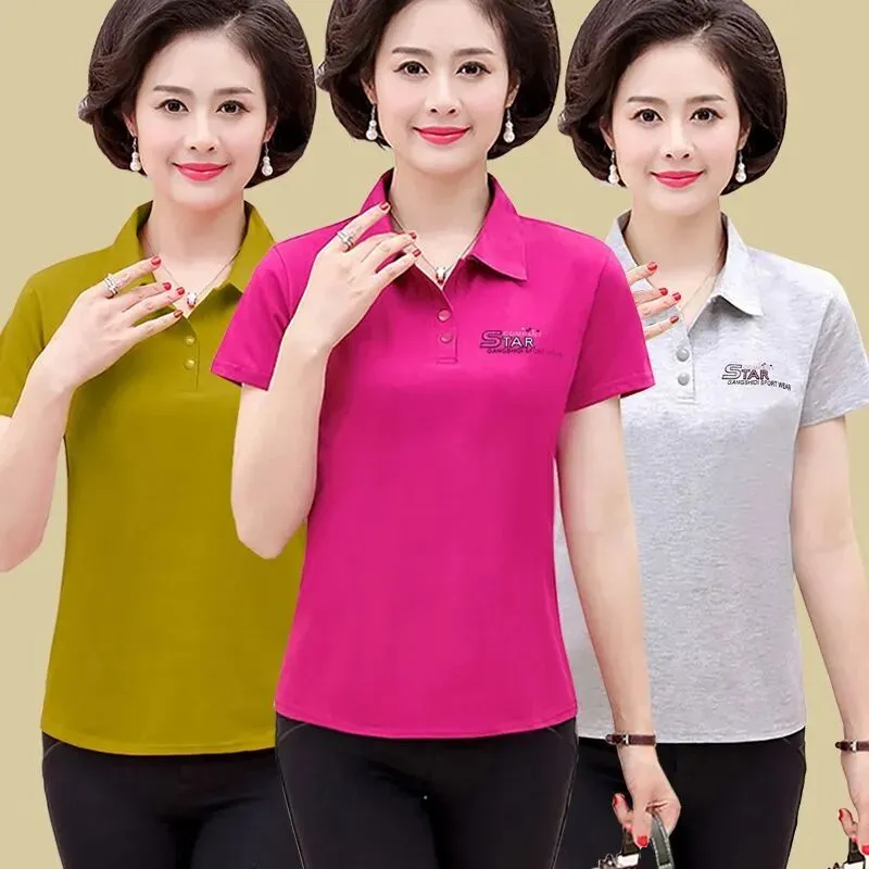 夏装新款中老年短袖棉T恤衫妈妈装翻领T恤中年女士休闲运动打底衫