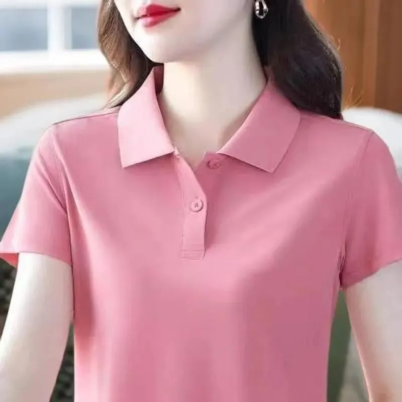 中老年 女士t恤短袖带领女士高档冰丝凉感t恤大码丝滑纯色POLO衫