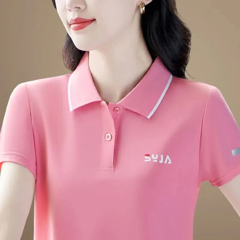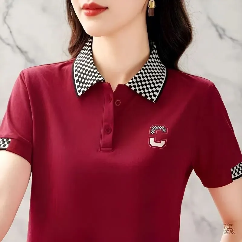 红色polo衫女士t恤短袖2026年夏季新款翻领百搭显瘦妈妈装T恤上衣