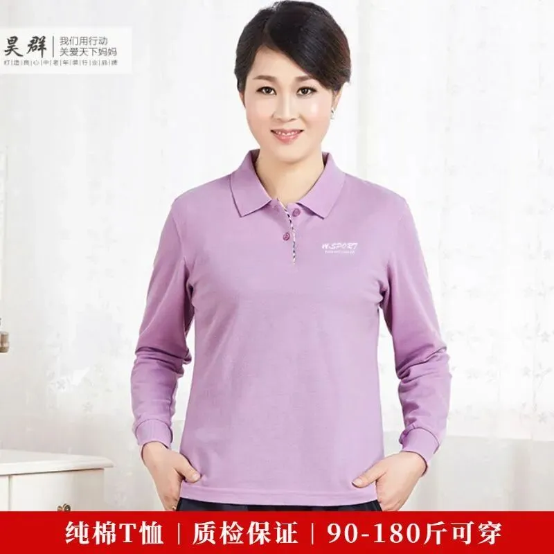 中老年女装长袖polo衫妈妈装加肥加大码棉打底衫运动透气上衣T恤