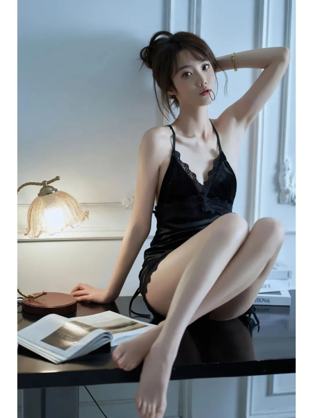伴随着夜的静谧,她随意地盘起发丝,眼神中透出一丝慵懒与迷离。黑色蕾丝的触感,仿佛是对自我的一种宠爱,让她在这独处的时光中,感受到一份独特的优雅与魅力。夜晚,是她与自己对话的最好时光,彰显出那份不被打扰的宁静与美好。