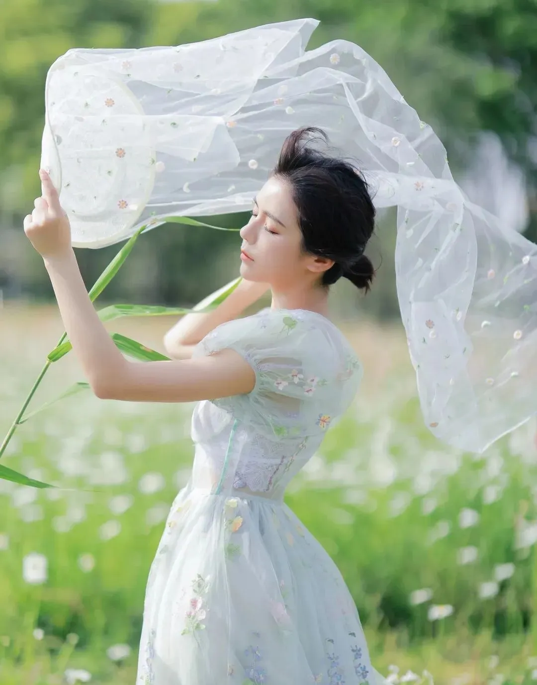 05、侧身举薄纱,闭眼感受风