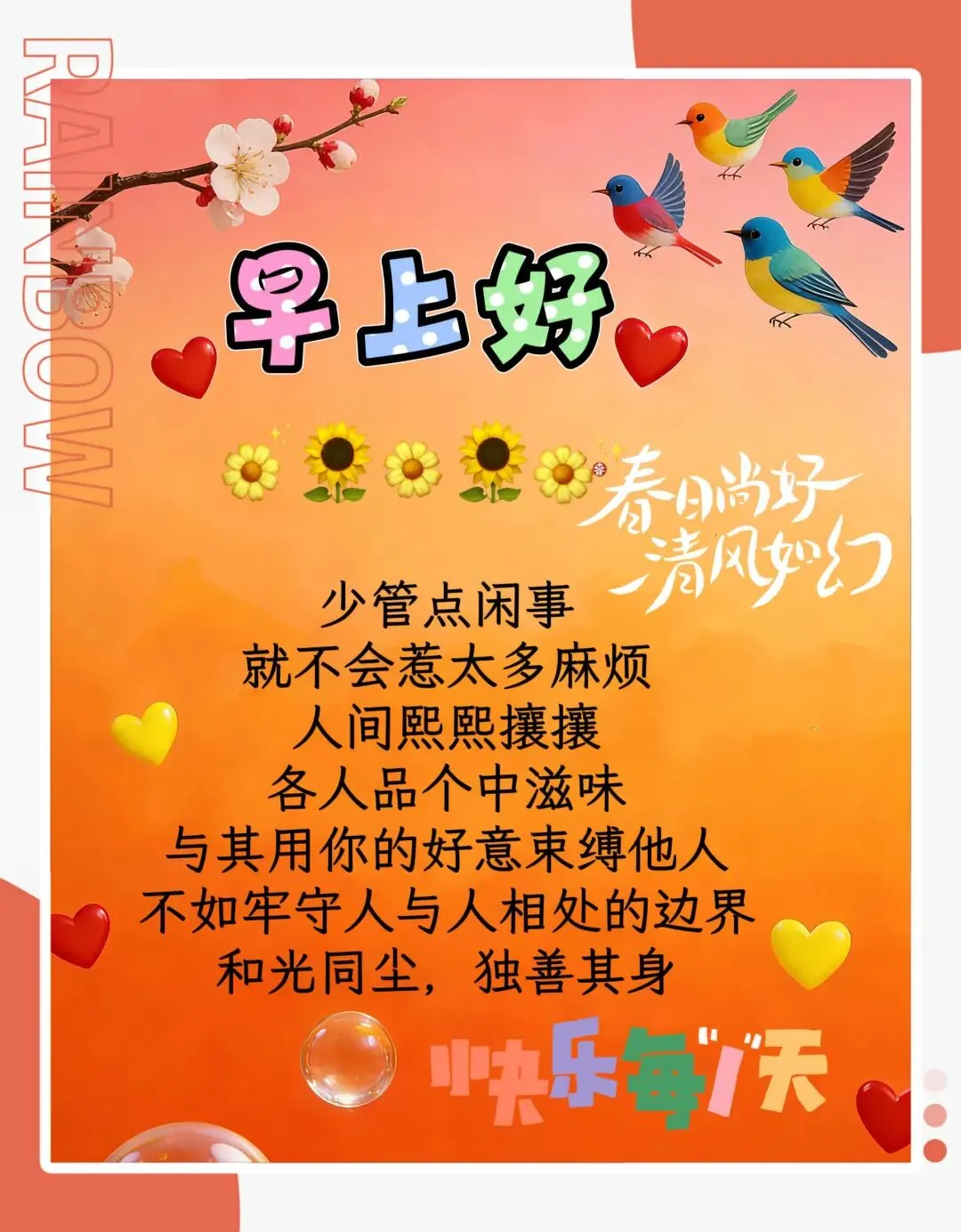 人生百年逢是缘,每日见字润心田💌。彼此珍惜互报安,感恩缘分情谊绵🙏。愿你生活多欢笑,幸福安康永相伴🌹。早上好,愿友安,快乐每一天❤️☕️🎉