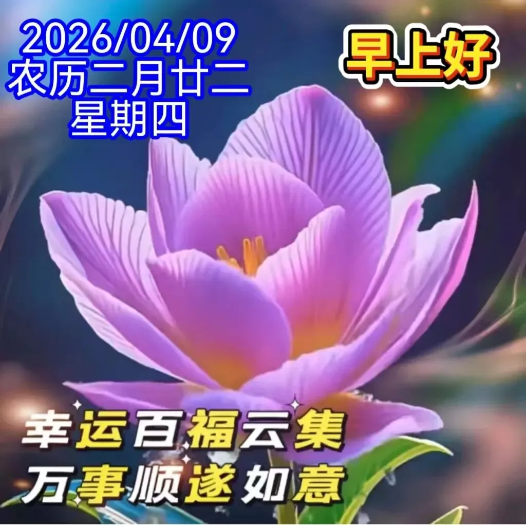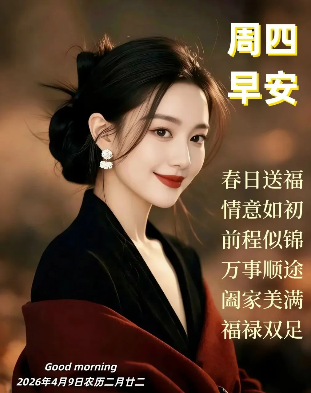 当前位置:首页>美女资讯>2026年4月9日周四早安图片,春光明媚,晨风轻柔,鸟语携香,暖意融融.愿你在春日里遇见美好