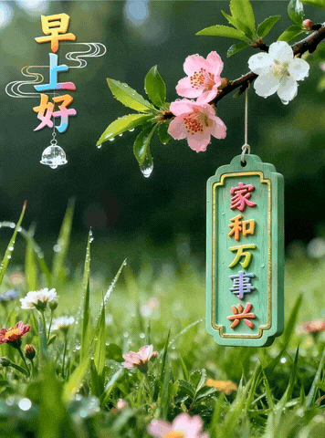 早安先问安,福气堆成山,出门遇贵人,进门喜事连。