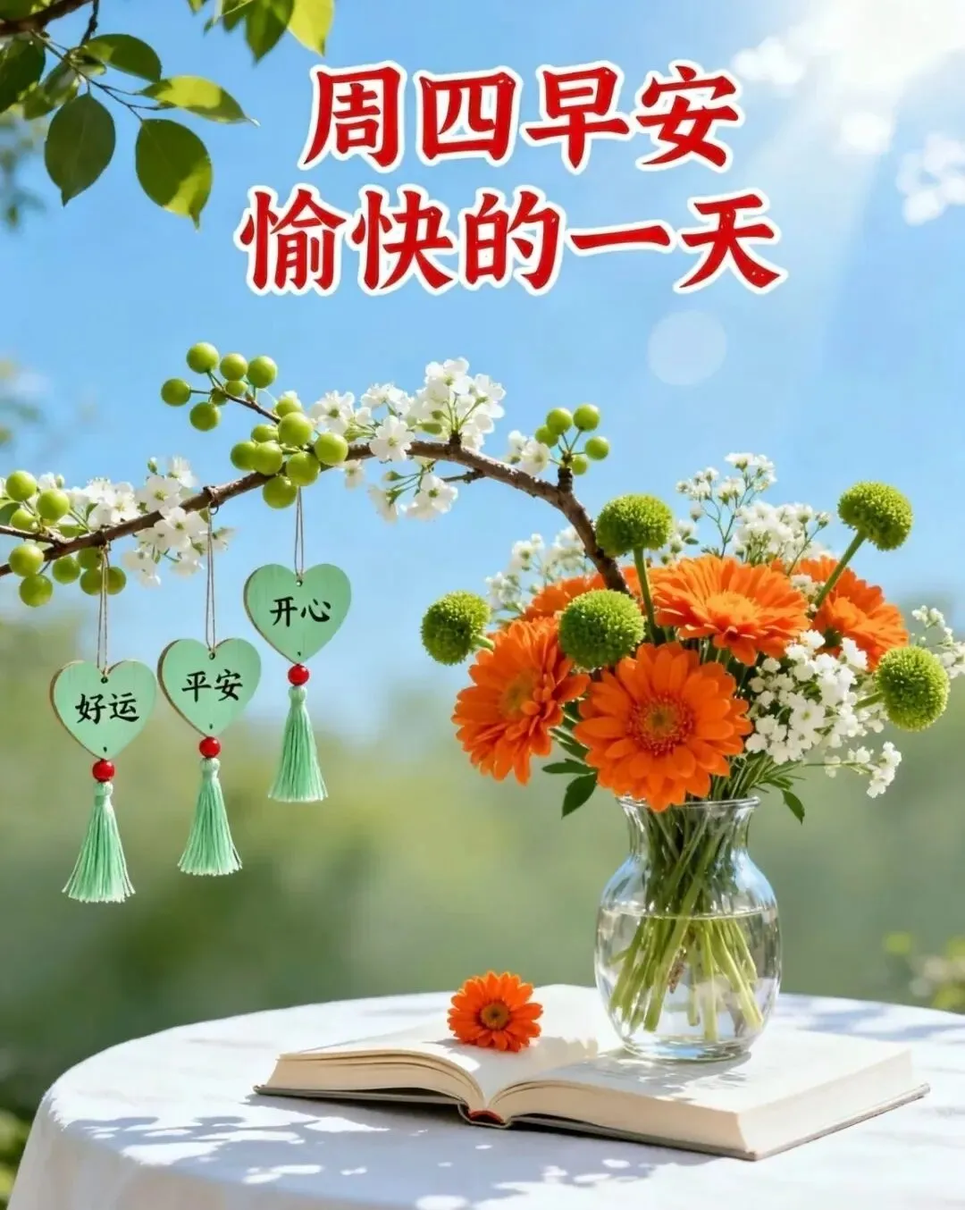春风十里新一天,清晨祝福到身边。🍃暖阳相伴心头热,珍惜岁月情与缘。🍂千言万语一句话,平安喜乐每一天!周四早上好!㊗️🌺🍀🍎