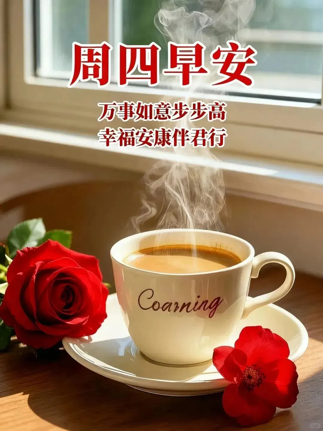 描尽春光,灿烂是你,望尽星河,温柔是你,读尽岁月,静好是你,人间烟火,归处是你,好运是你,安康也是你。早安!周四愉快,花开富贵,如意顺心!☕🌹