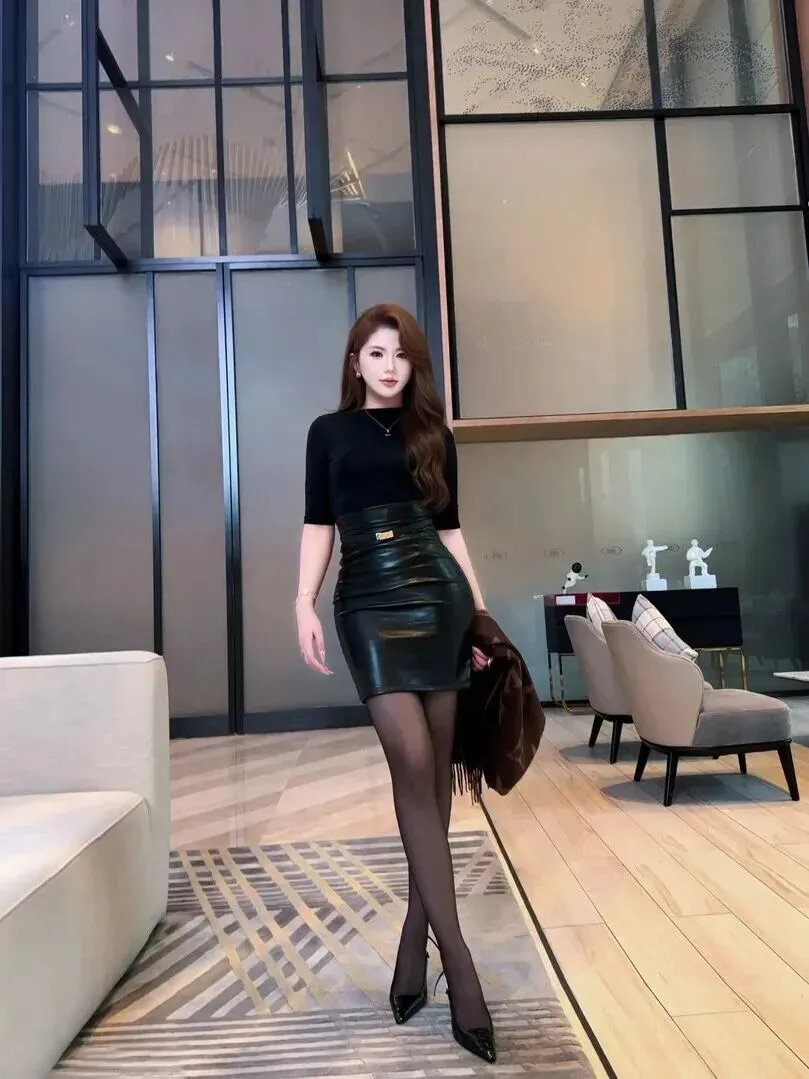 你可以选择黑色针织衫、包臀短裙、百搭尖头高跟鞋这三件单品进行本款式的试穿。配饰选精致的,不用多,一点点就能提升整体效果。时尚不是追大牌,是找到适合自己品味的细节。