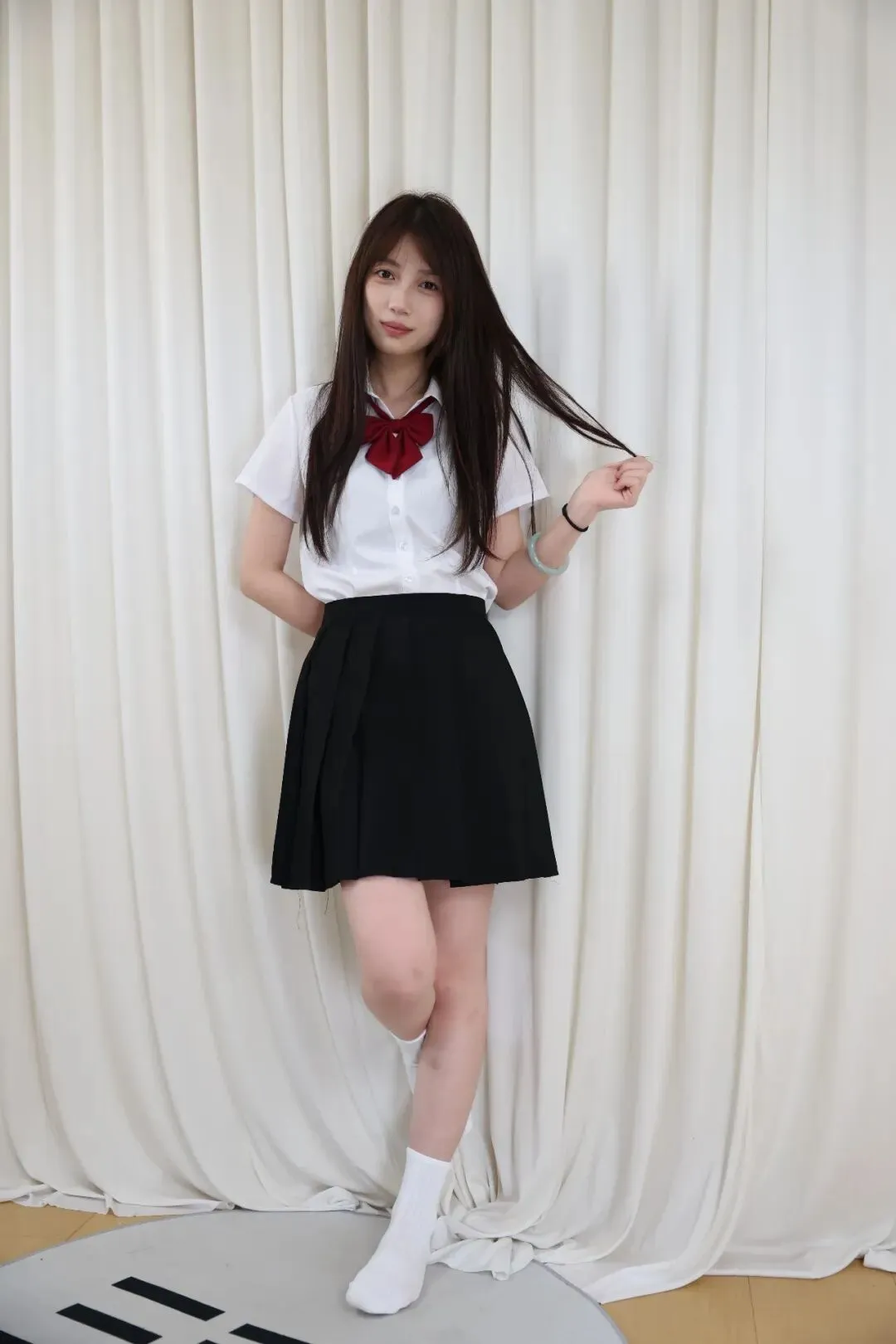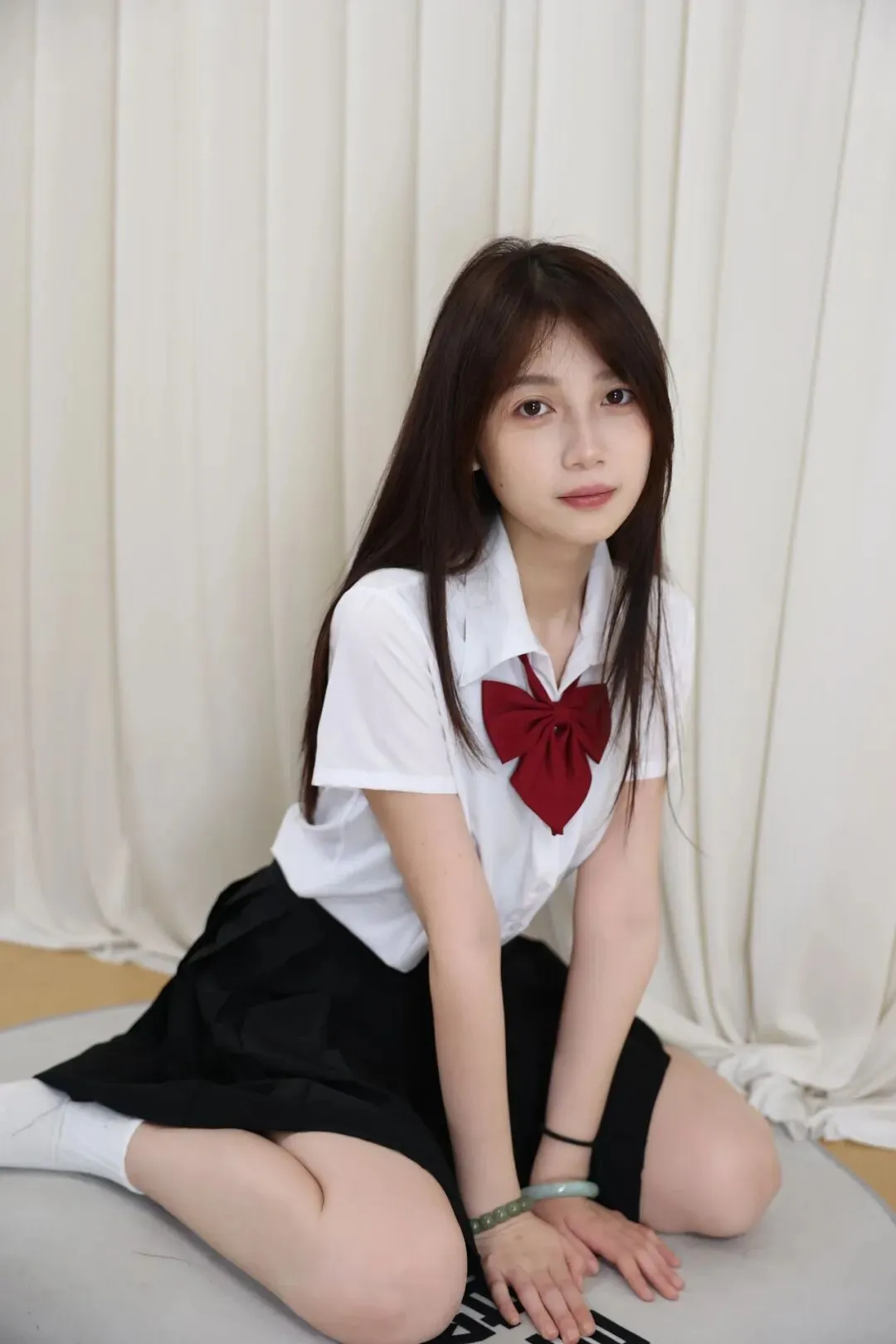 谁懂啊!白衬衫 + 红领结 + 黑百褶裙,就是青春里最顶的组合拳!今天的主角宁宁,直接把「日系校园学妹感」焊在了身上✨
