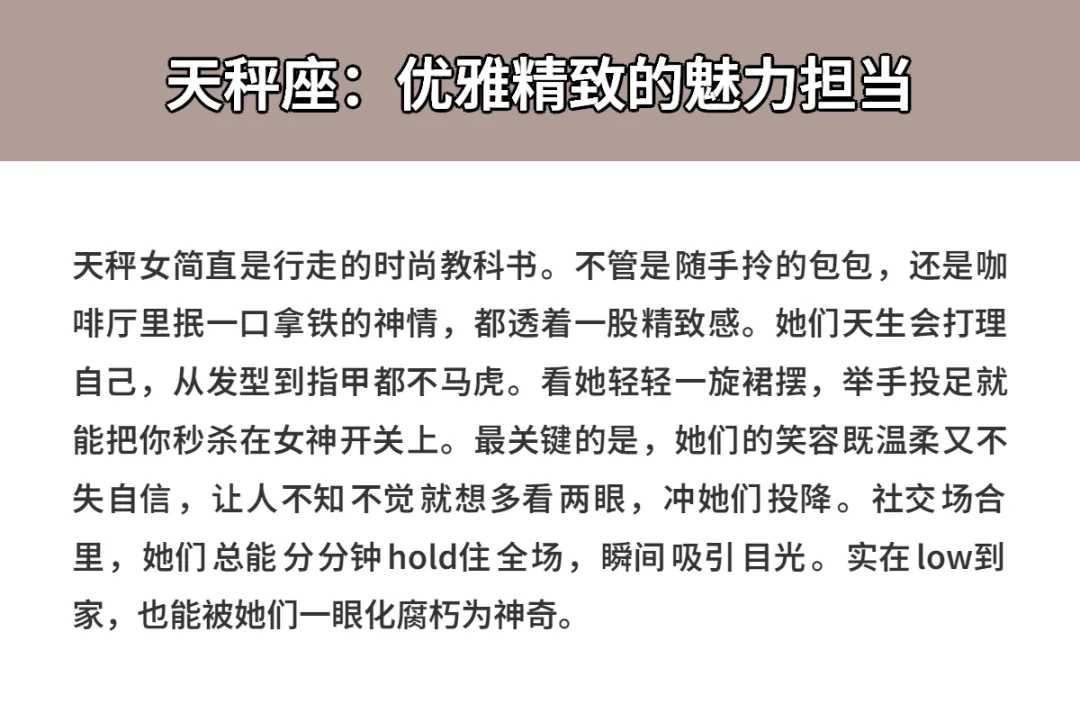 当前位置:首页>美女资讯>最有女神气质的三个星座女