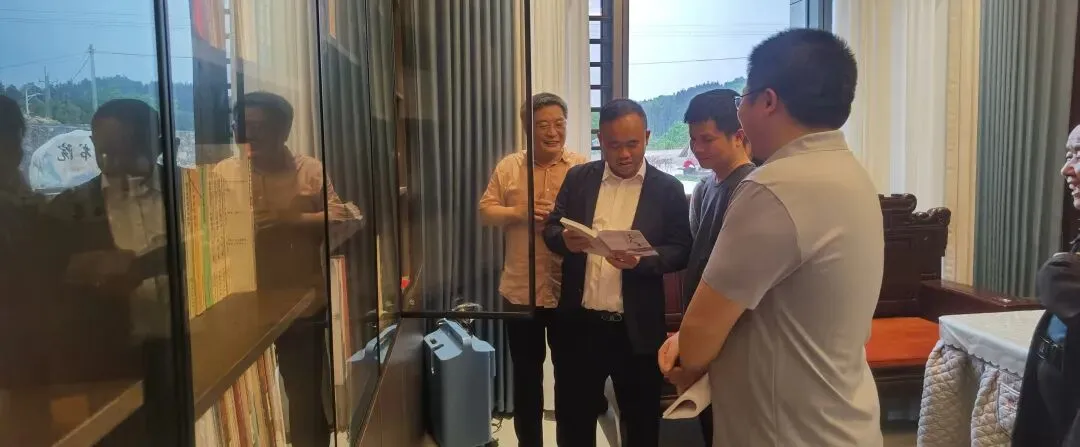 宗才书院院长陈德贻向专题调研团队一行介绍了宗才书院建设情况及其所赋能的“孝、根、教”三大功能,对“老门前农民广场”规划和环胜利水库美丽乡村建设构想进行了简要陈述,随后引领参观宗才书院内部陈设和考察周边建设情况。周小勇镇长在参观和调研后认为,宗才书院是板桥镇重要的乡土文化地标之一,其保存和展示的乡土作品、图书资料与文化记忆,是推动干沙港及其周边乡村文化振兴的一件好事、幸事、大事。他强调,乡村文化建设是乡村文化振兴的前提,乡村文化振兴要高度重视乡土文化资源的保护和开发工作,未来板桥镇将继续协调好宗才书院各方面的后续规划和持续建设工作。
