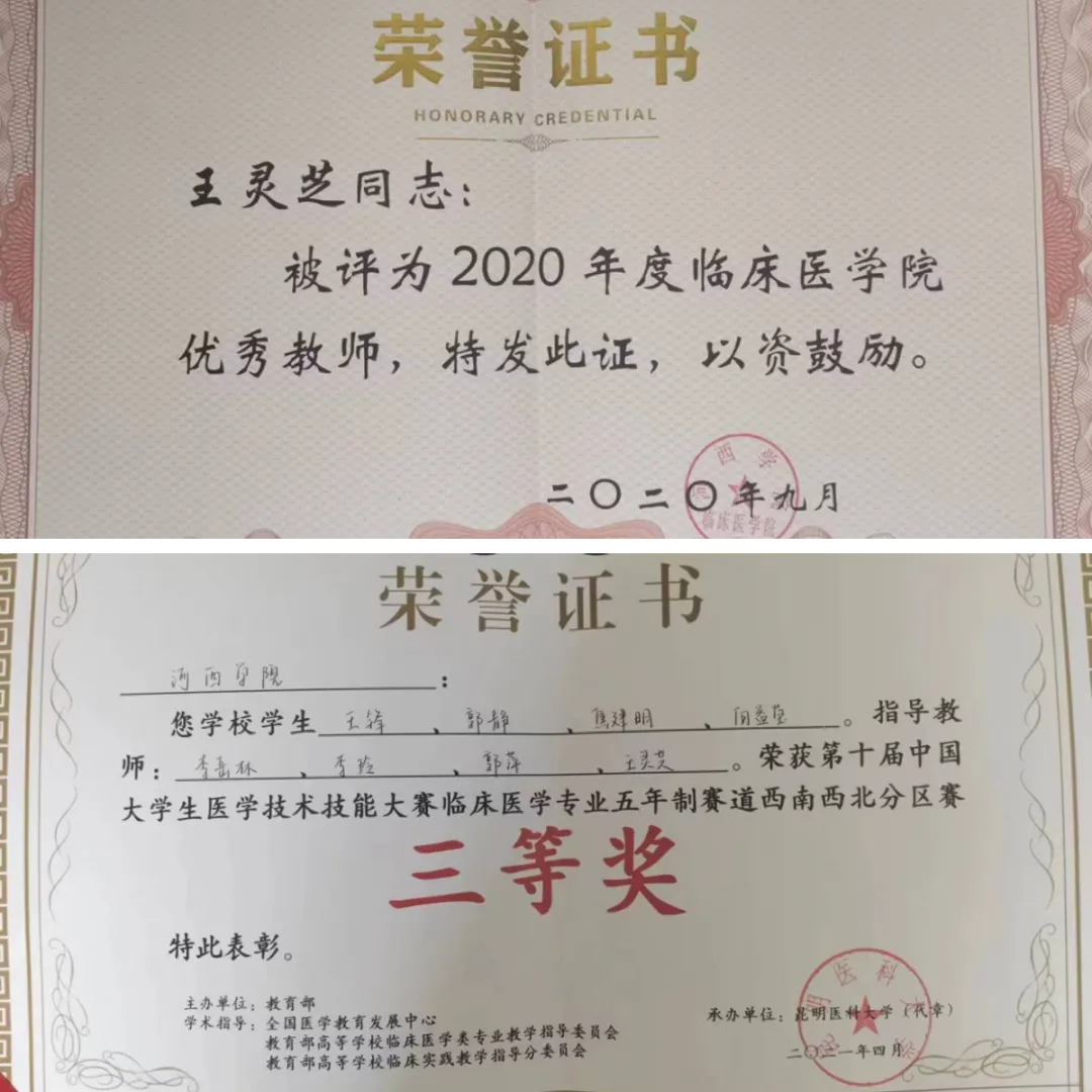 在临床工作的同时,王灵芝还承担河西学院临床医学院教学工作。在平凡的教学岗位上,她坚持把丰富的临床经验与教学紧密结合,并通过网络和书籍、教学培训等方式,努力提升自己的教学能力。
