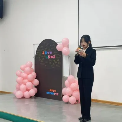 活动伊始,尹其磷副书记代表学院,向在座的每一位女生送上了节日的温馨祝福,并深情寄语:愿所有女同胞们如花般绽放青春的独特魅力,以笔书写属于自己的时代华章。他还勉励女生们树立独立自强意识,在专业学习和校园活动中展现新时代女性的智慧与风采,为营造平等、和谐、进取的校园文化贡献力量。