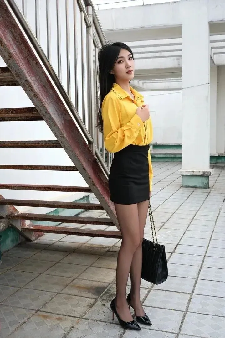 下身是黑色高腰包臀短裙。这条裙子太显瘦了,高腰设计把腰线提上去之后腿就长了一米八,小个子女生也能穿得下去。紧身包臀版型符合人体曲线,突出迷人的腰臀比,性感又有范儿。裙子非常简单朴素,没有装饰,与亮黄色的上衣形成了强烈的视觉反差,很显立体。走在街上回头率非常高。